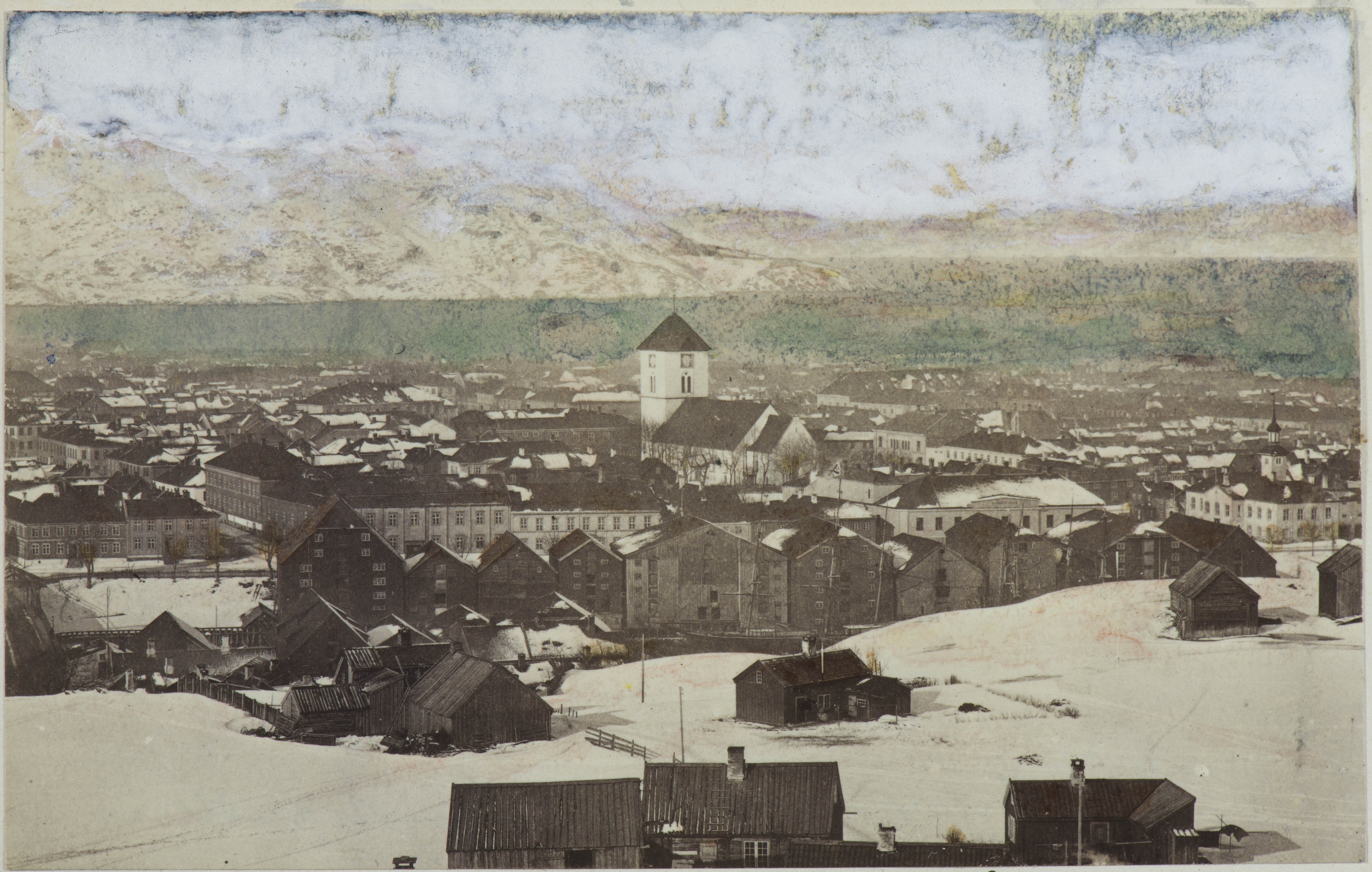 Utsikt over Trondheim fra Kristiansten. I forgrunnen, Kristianstenssletta med bebyggelse. Lengre bak bryggene langs Nidelva og husene i Kjøpmannsgata. Helt til venstre, Kjøpmannsgata 8 og 10. Til høyre for nr. 10 går Erling Skakkes gate. På andre siden av gata, rett bak den høye, spisse brygga, ligger gården til Borgerklubben, Den borgerlige Club, senere Trondhjems Håndverk- og Industriforening i Kjøpmannsgata 12. Til venstre for denne ruver Dessen-gården. Til høyre for Borgerklubben, Huitfeldtgården, Kjøpmannsgata 14. Både nr. 12 og 14 ble ødelagt av brann i 1898. Ca. midt i bildet, Vår Frue kirke.