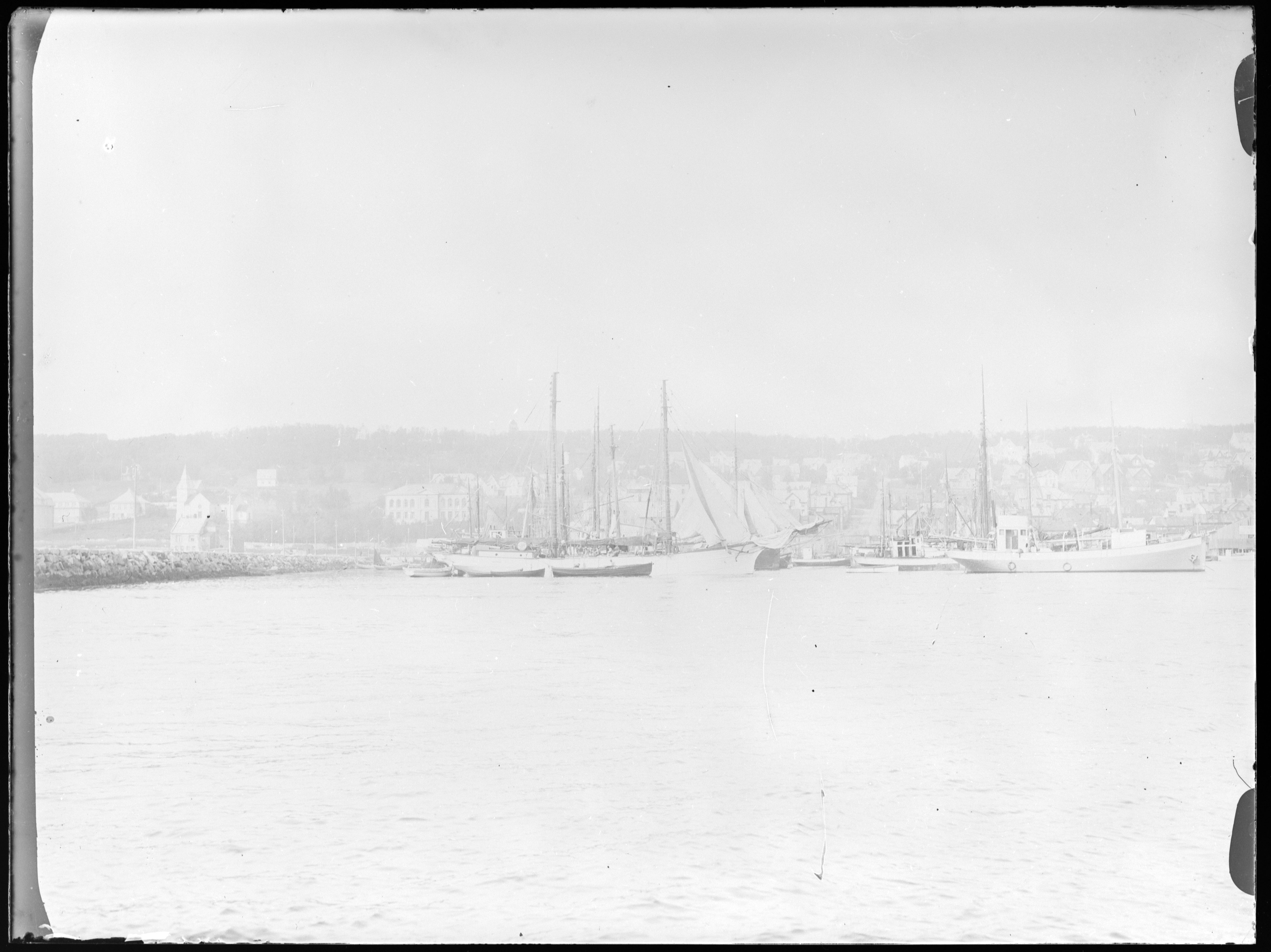 Eskenummer: 28 Esketittel: M/S Gunnerus. 1929 Indre emballasje 1: Øksfjordjøkelen Påskrevet: Øksfj-jøkel. Havn med båter, samfunn og bebyggelse i bakgrunnen Motstridende opplysninger mellom ulike nivåer av emballasje kan forekomme i Carl Dons fotoarkiv.