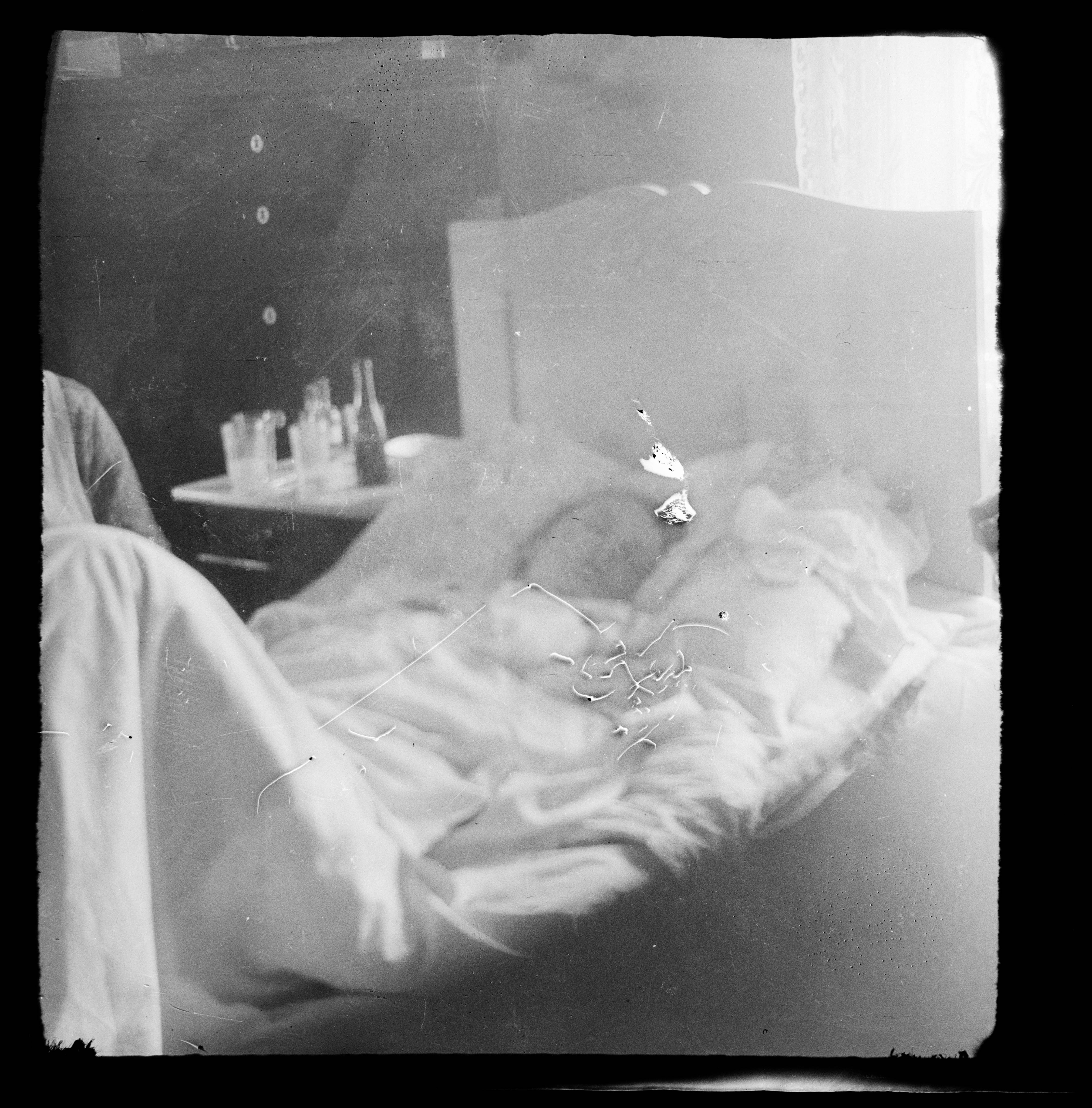 Kvinne ligger i seng. Muligens sykeleie.