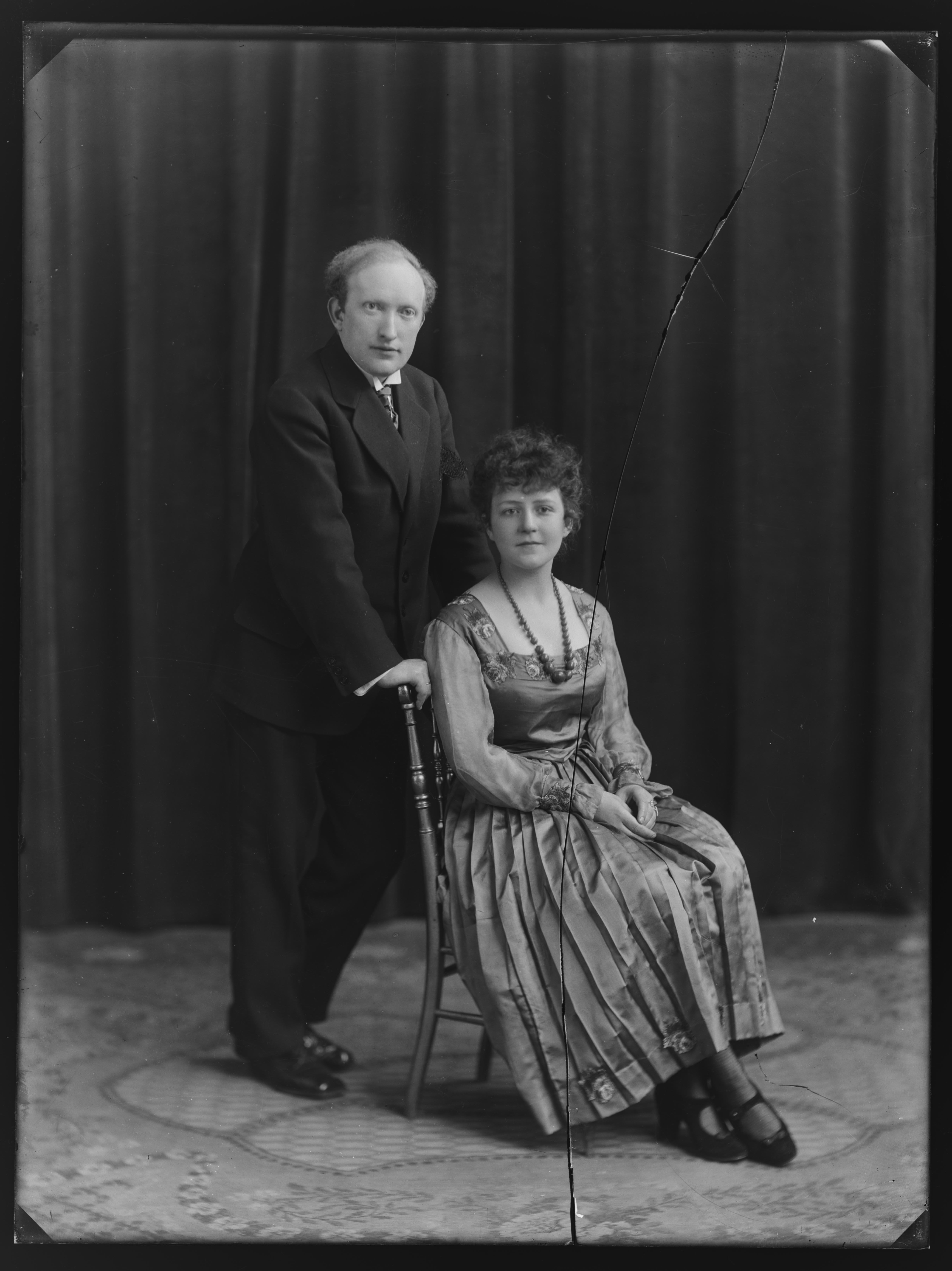 Eskebeskrivelse: Gruppebilleder av privat karakter, blant annet brudepar, grupper i interiør etc. Ingen samer i drakt. Plater uten navn og nummer. Eskenummer: 2.