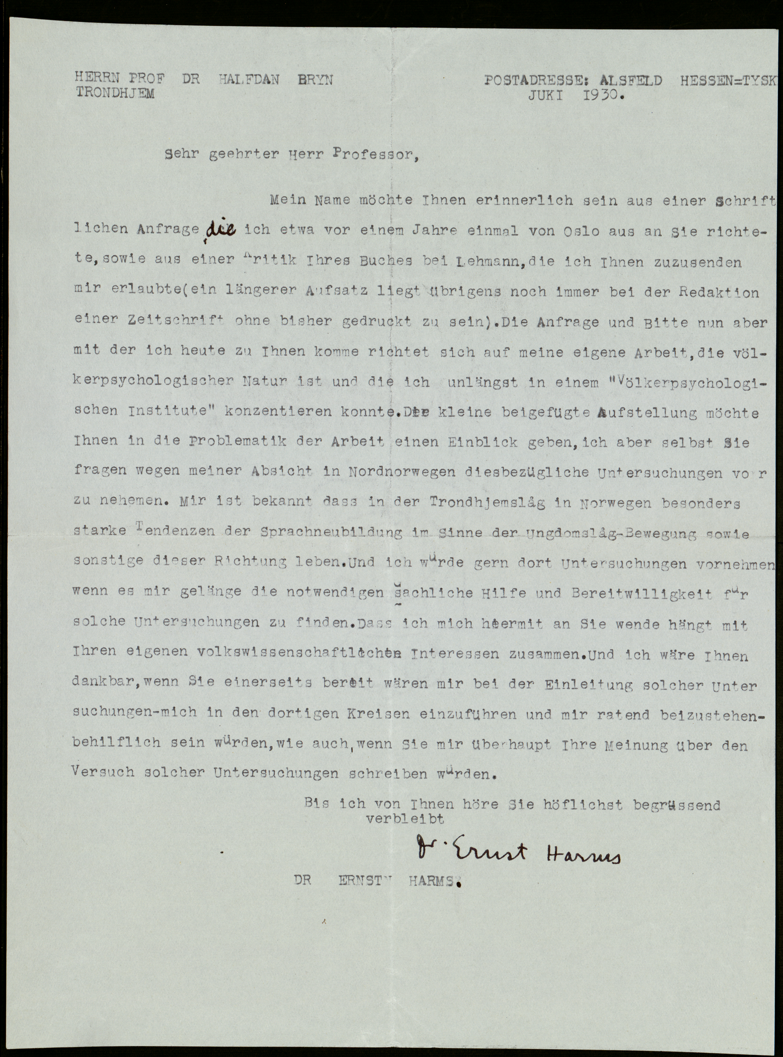 [Brev fra dr. Ernst Harms]