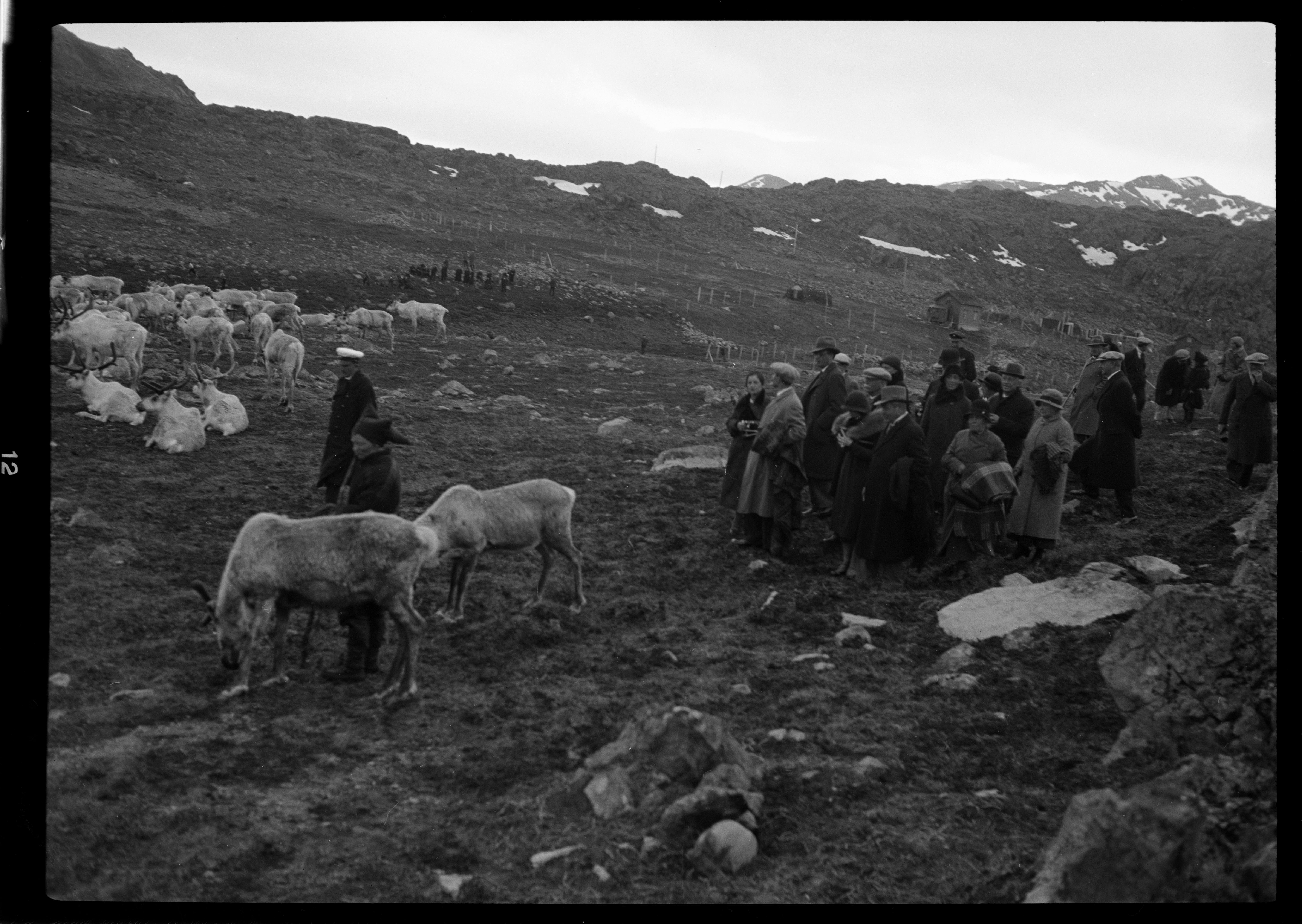 Turistene fra hurtigruta besøker samer med reinsdyr, på Magerøen.