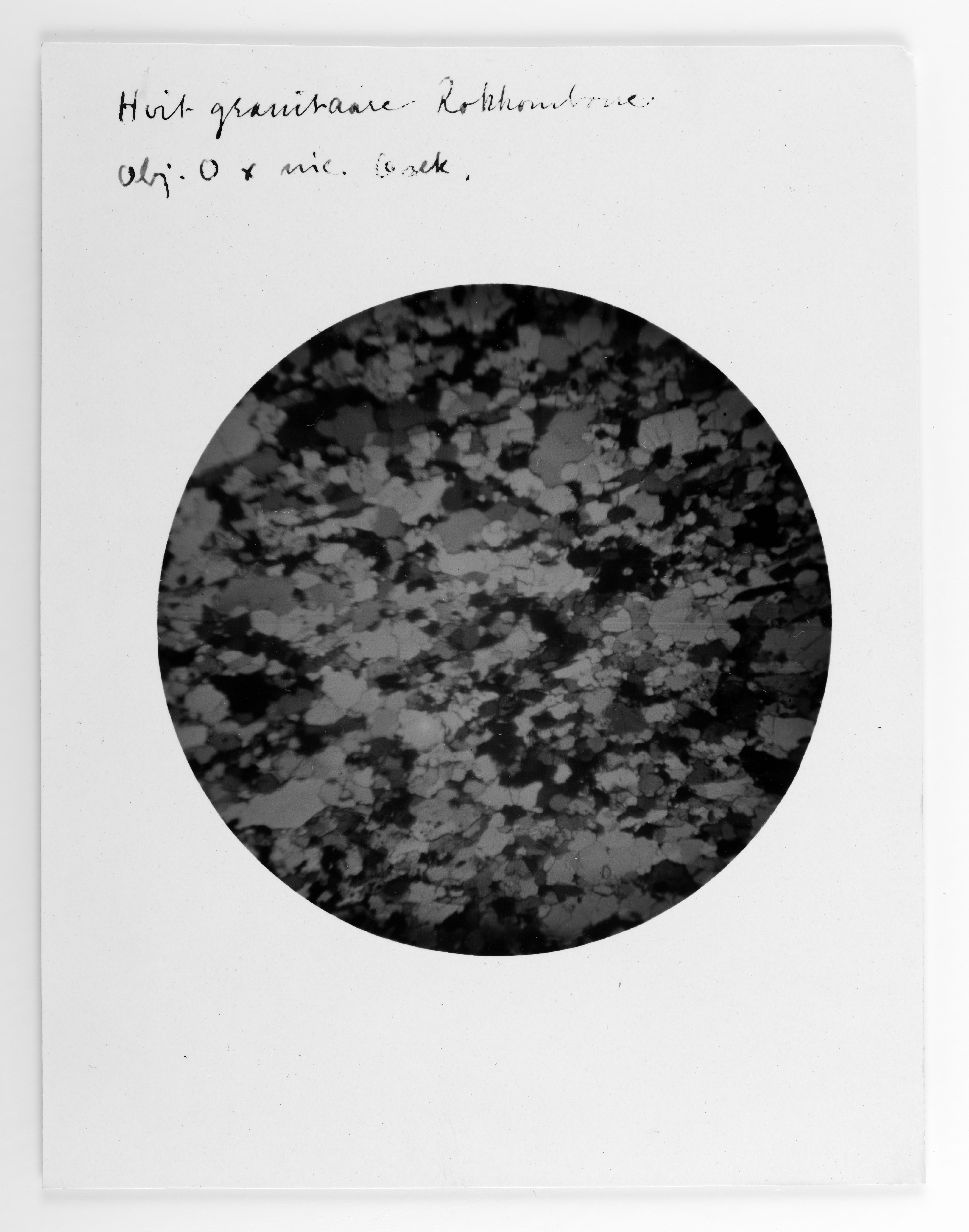 Eskenummer 41, glassnegativer. Påskrevet indre eske: Nr. 135. Bildeinformasjon: Hvit granitaare Rokkomborre Obj. 0 x nic. 6 sek.