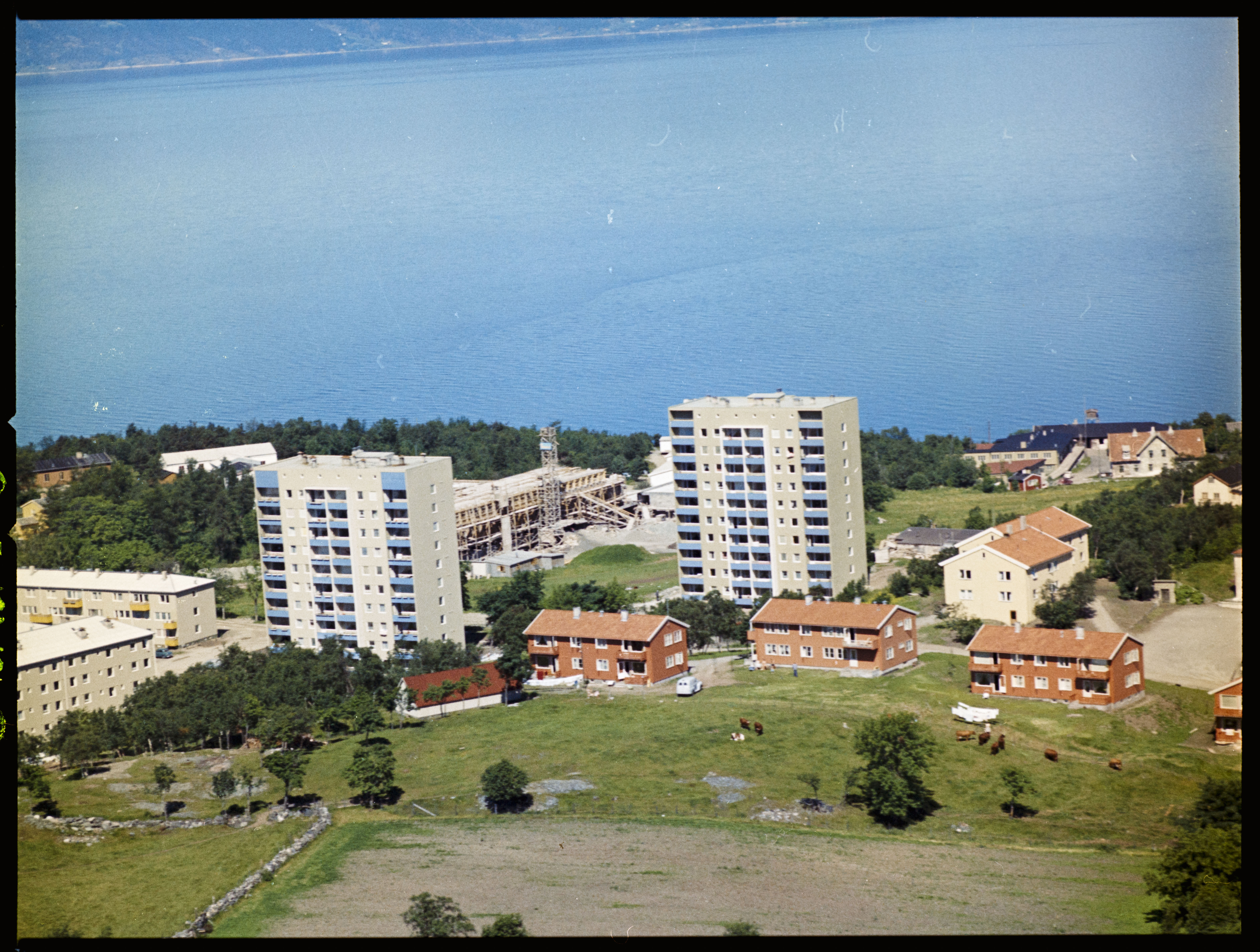 Østmarkneset med høyblokkene i Harry Borthens vei. Bak ses bygninger under oppføring hos Norges geologiske undersøkele (NGU).