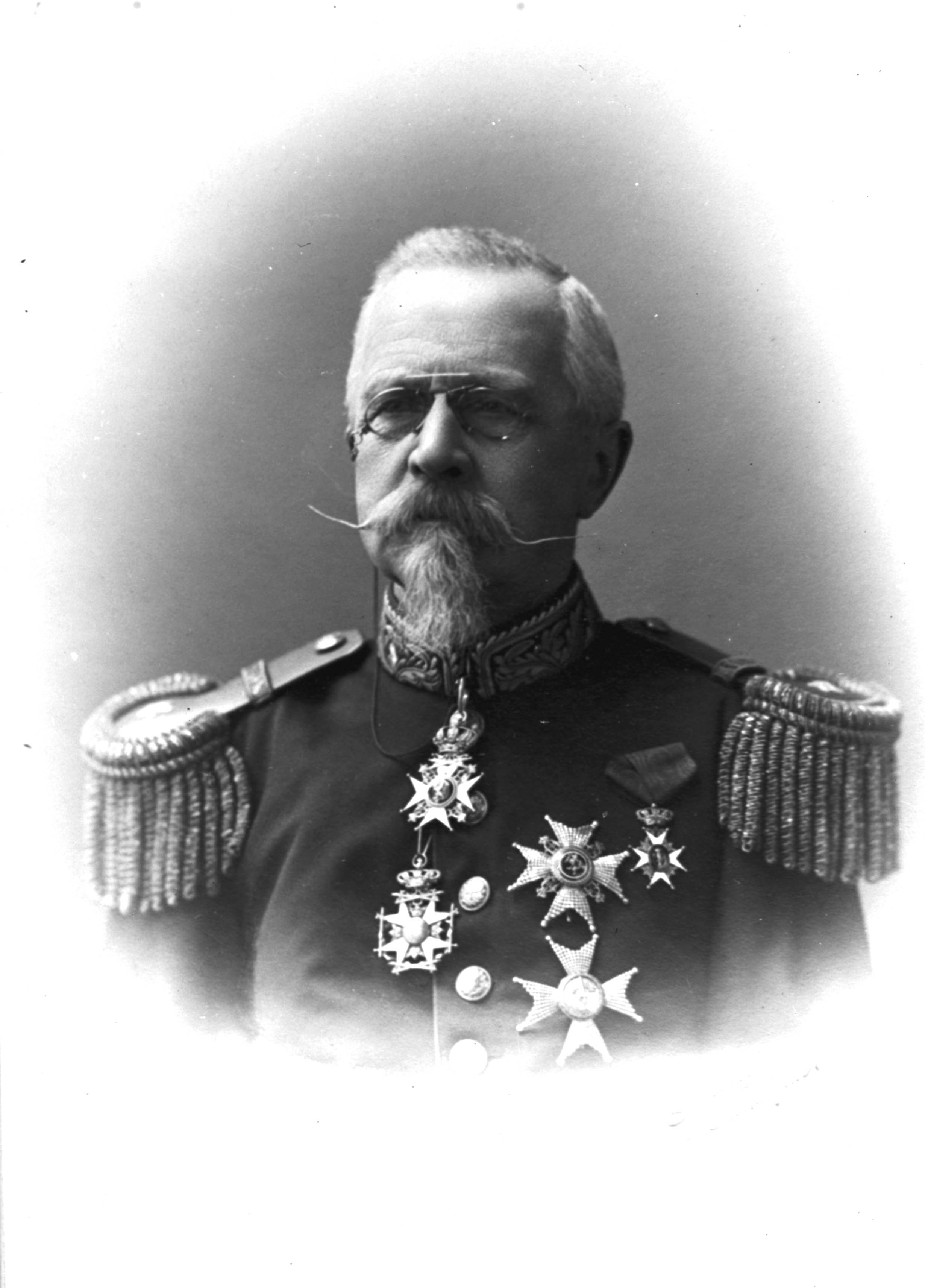 mann halvfigur bart og flippskjegg uniform epåletter orderner medaljer