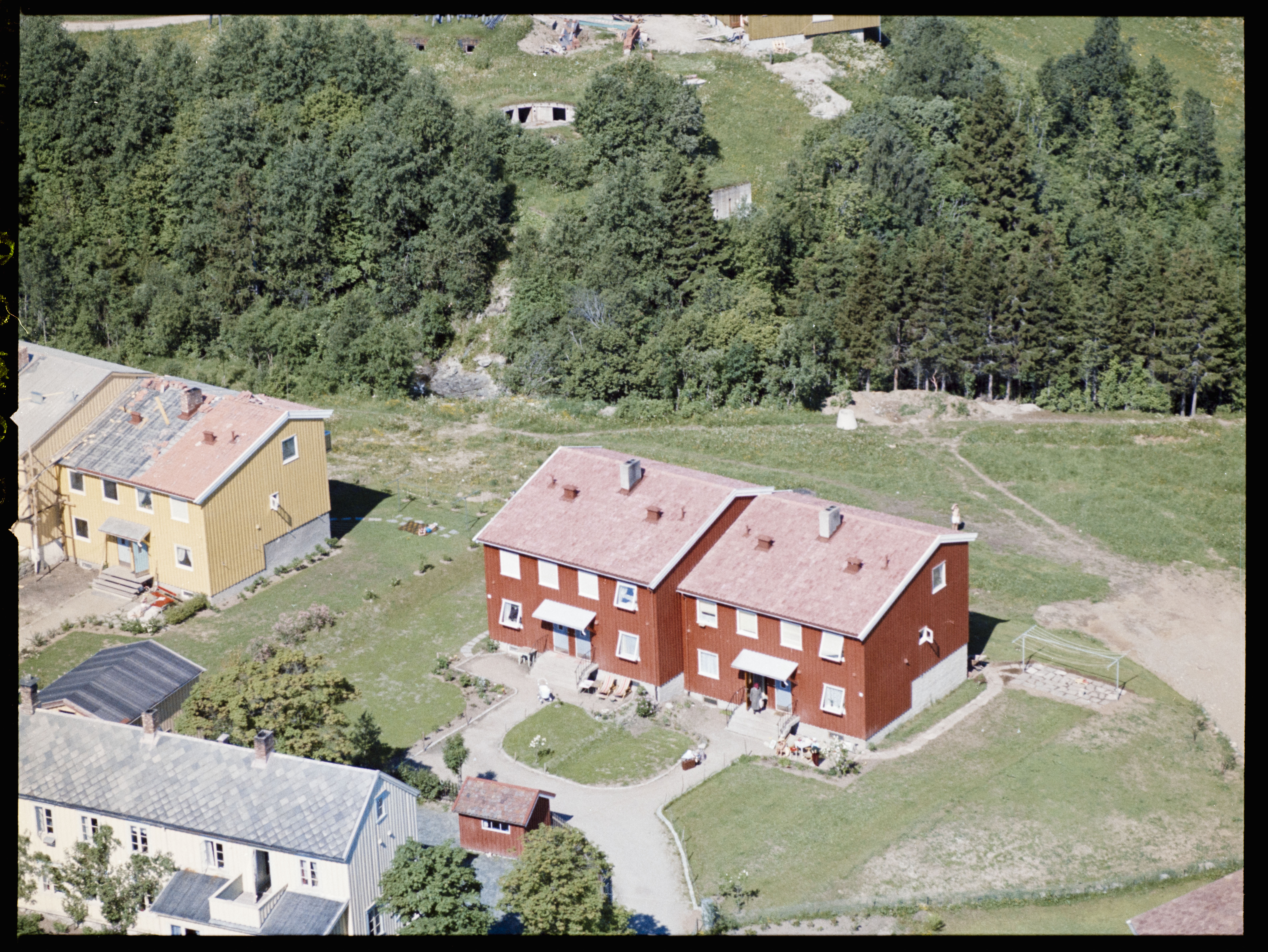 Boliger i Tverrstien og Rådmann Hammers vei på Hammersborg på Byåsen sett mot Ilabekken (Ilavassdraget). Bak ses levninger av det tyske batteriet på Fagerhaug fra andre verdenskrig.