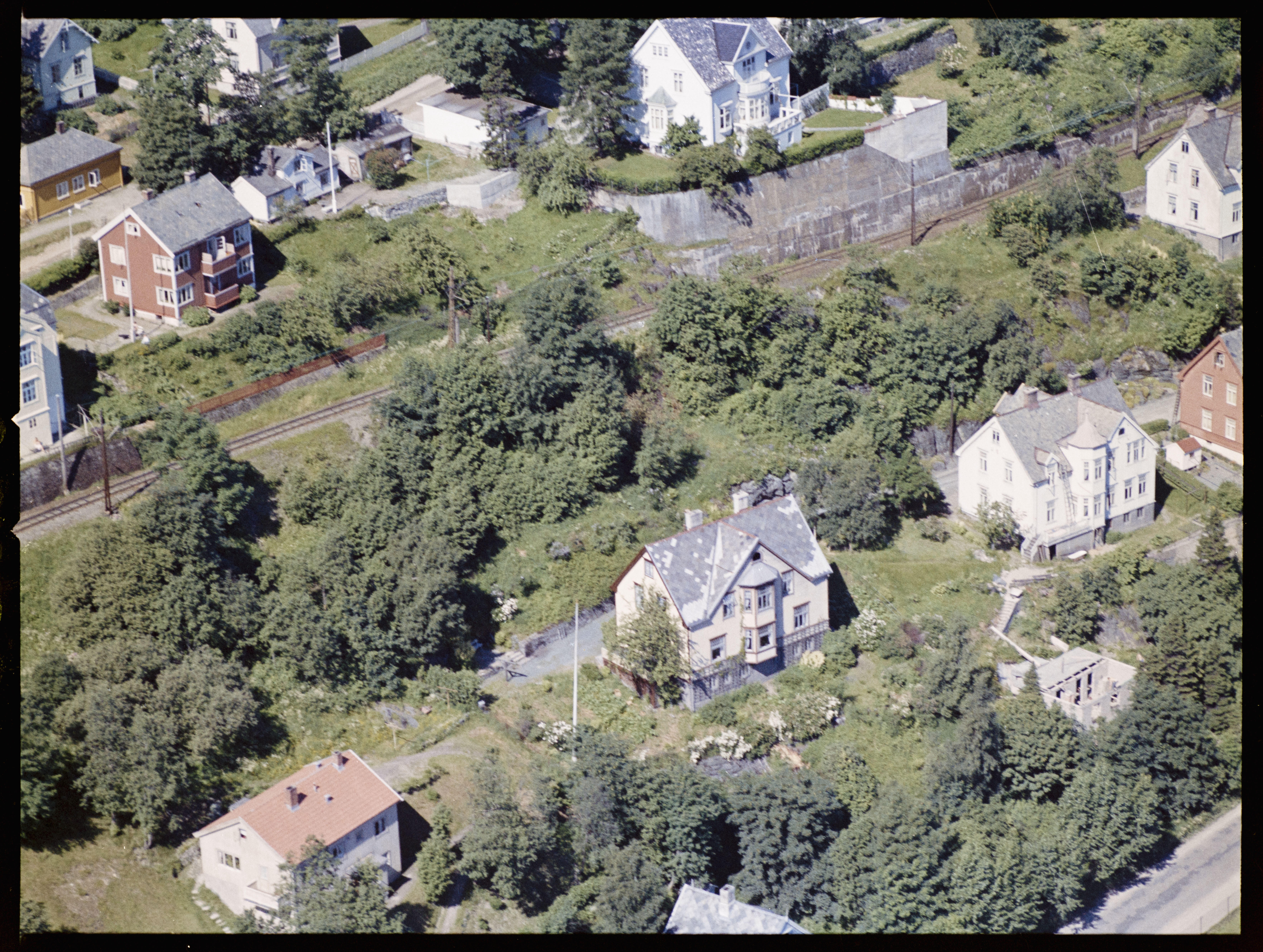 Boliger i Gamle Åsvei og Osloveien adskilt av Gråkallbanen.