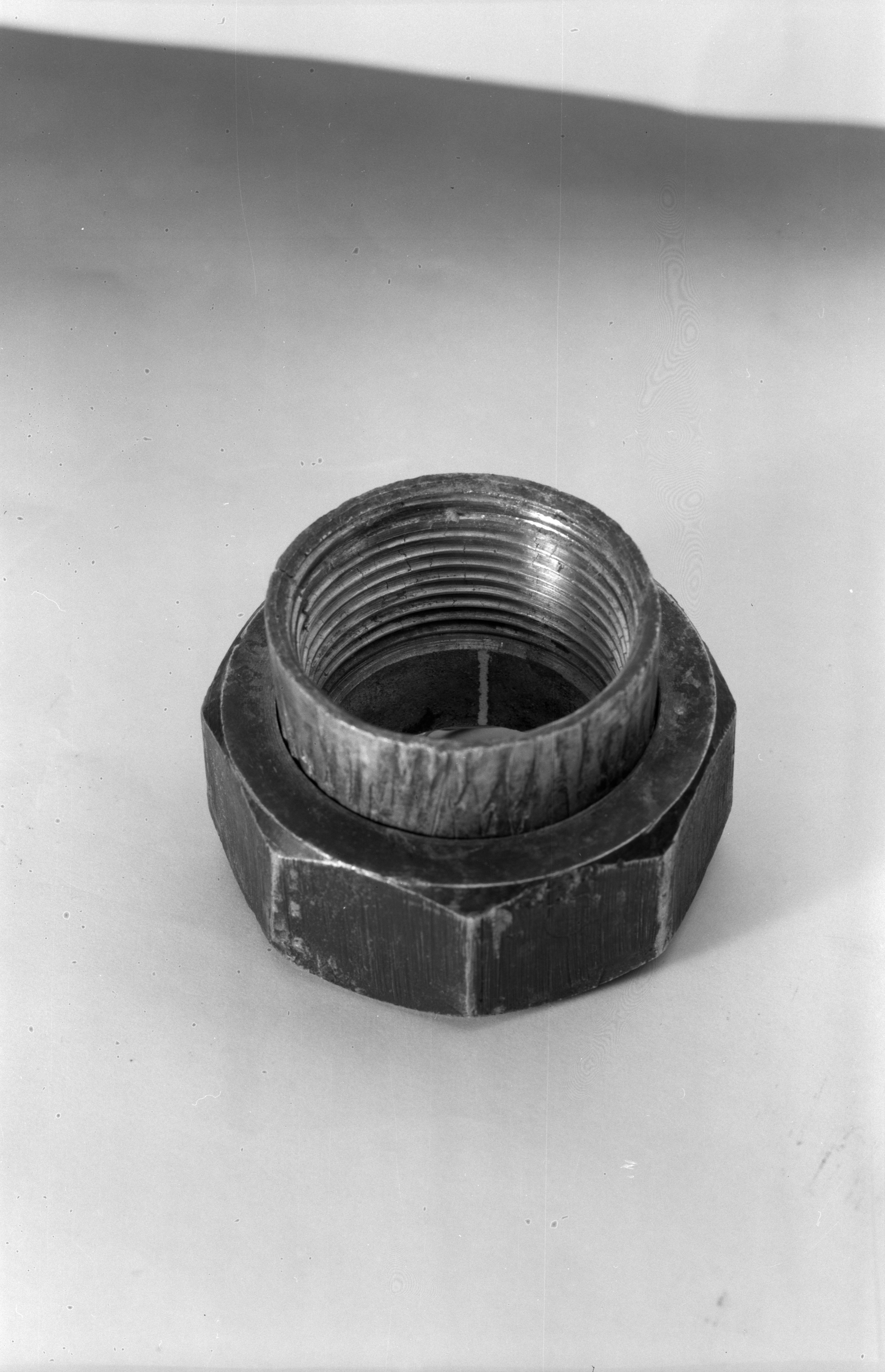 Overingeniør Solheim. Rørmuffe, mutter, rørstykke.