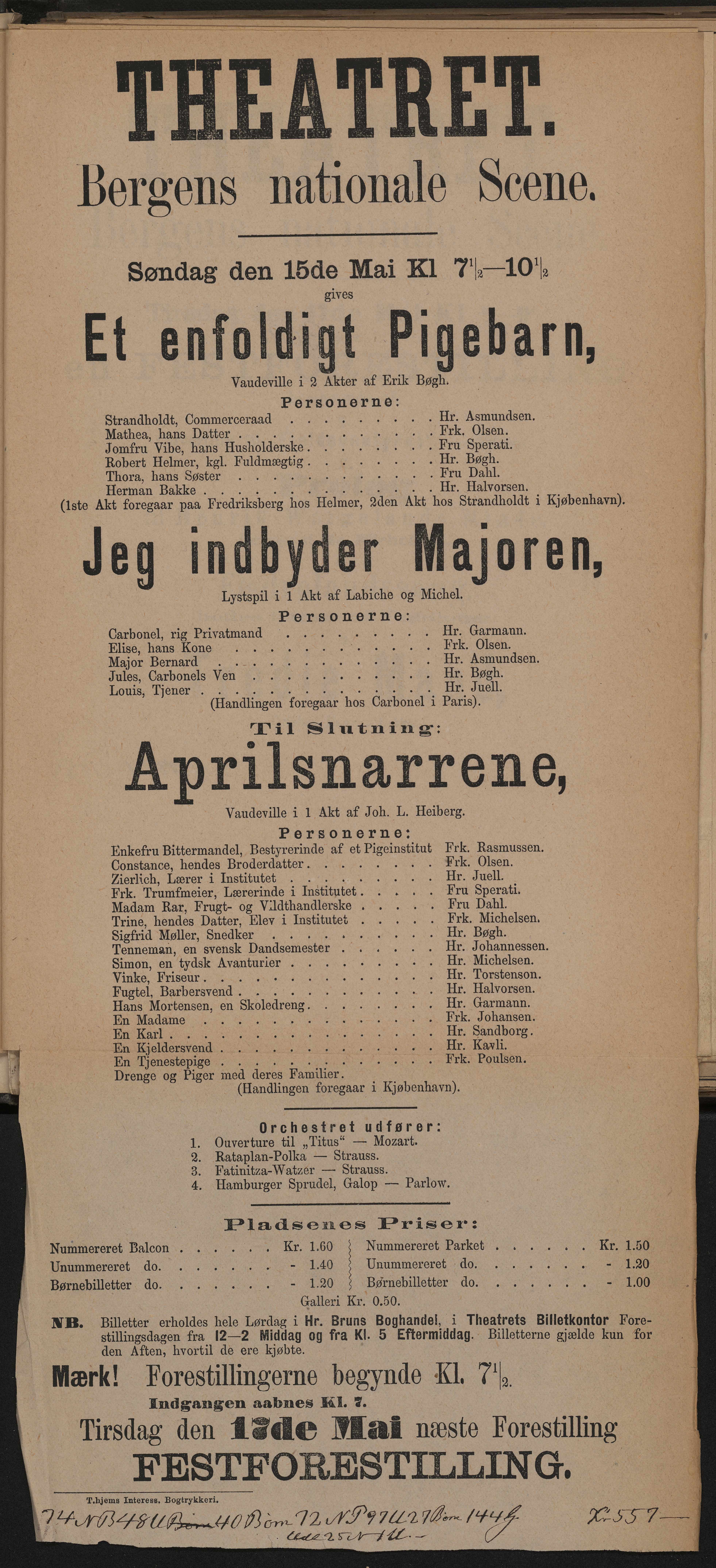 Et enfoldig Pigebarn. Jeg indbyder Majoren. Aprilsnarrene