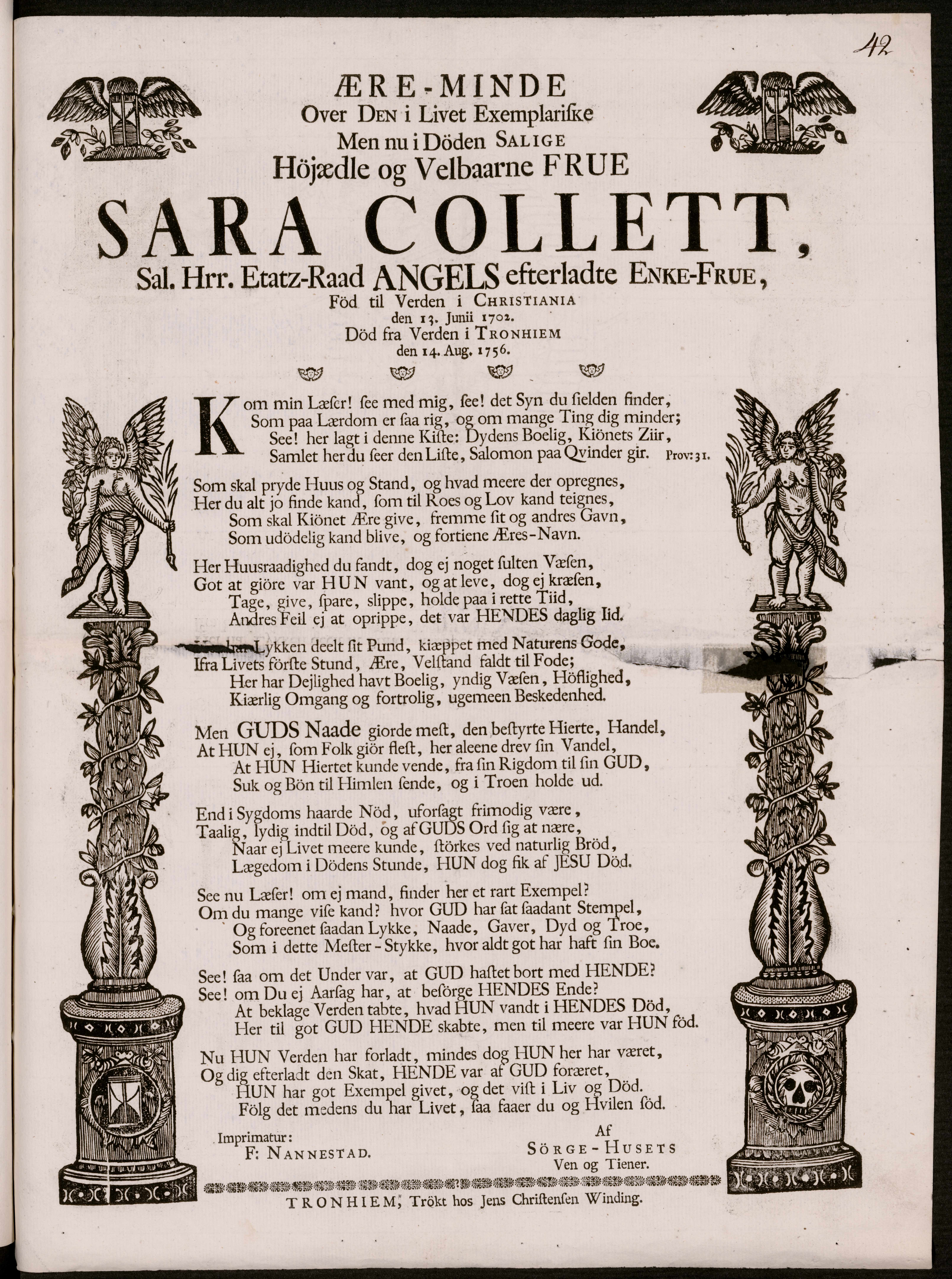 Begravelsesvers fra 1756 for Sara Angell