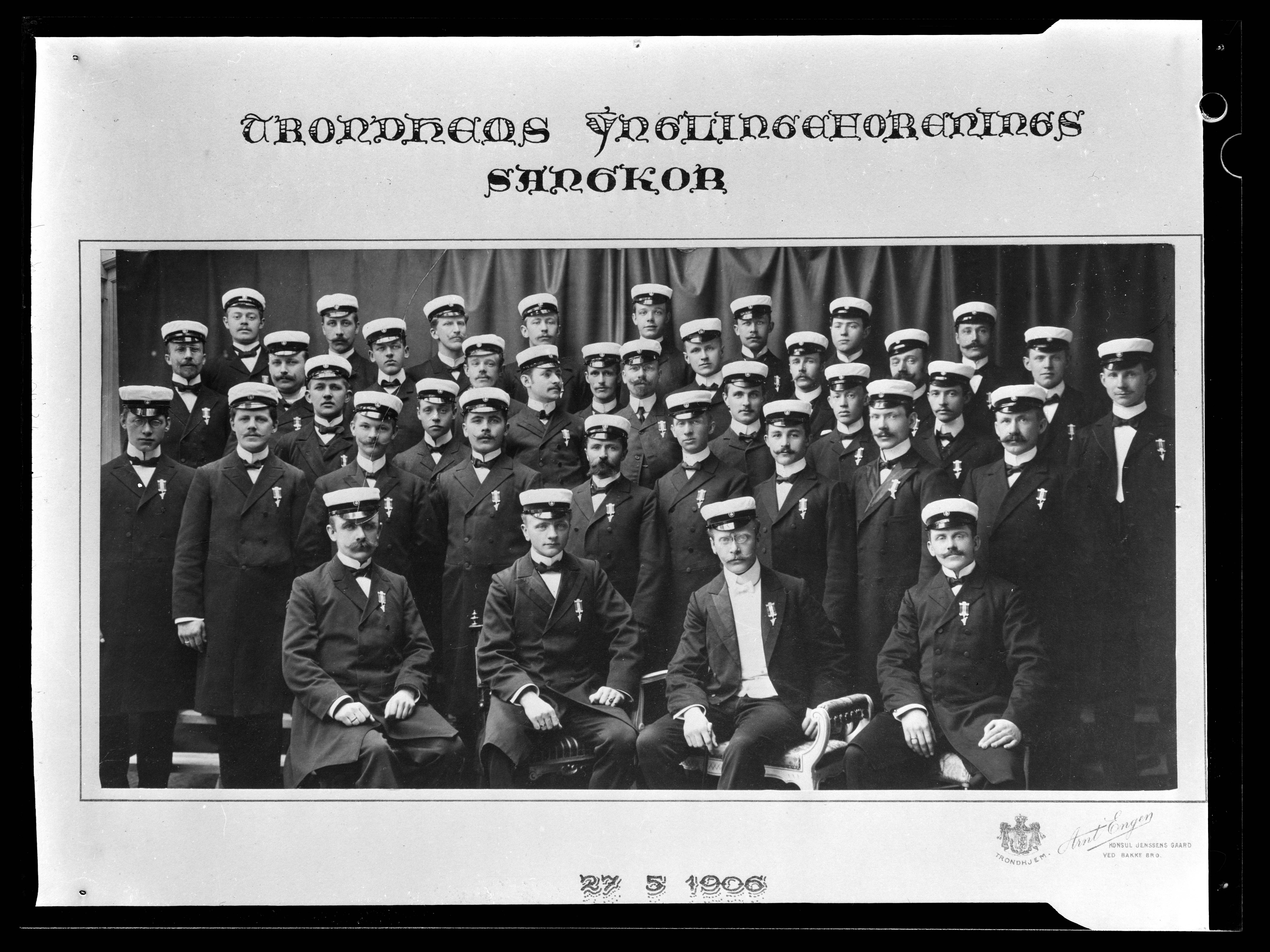 Kopiplate. Avfotografert gammelt fotografi. Bestilt av Trondhjems Mandskor? Tekst på fotografiet: Trondhems Ynglingeforenings Sangkor. Fotograf: Arnt Engen.