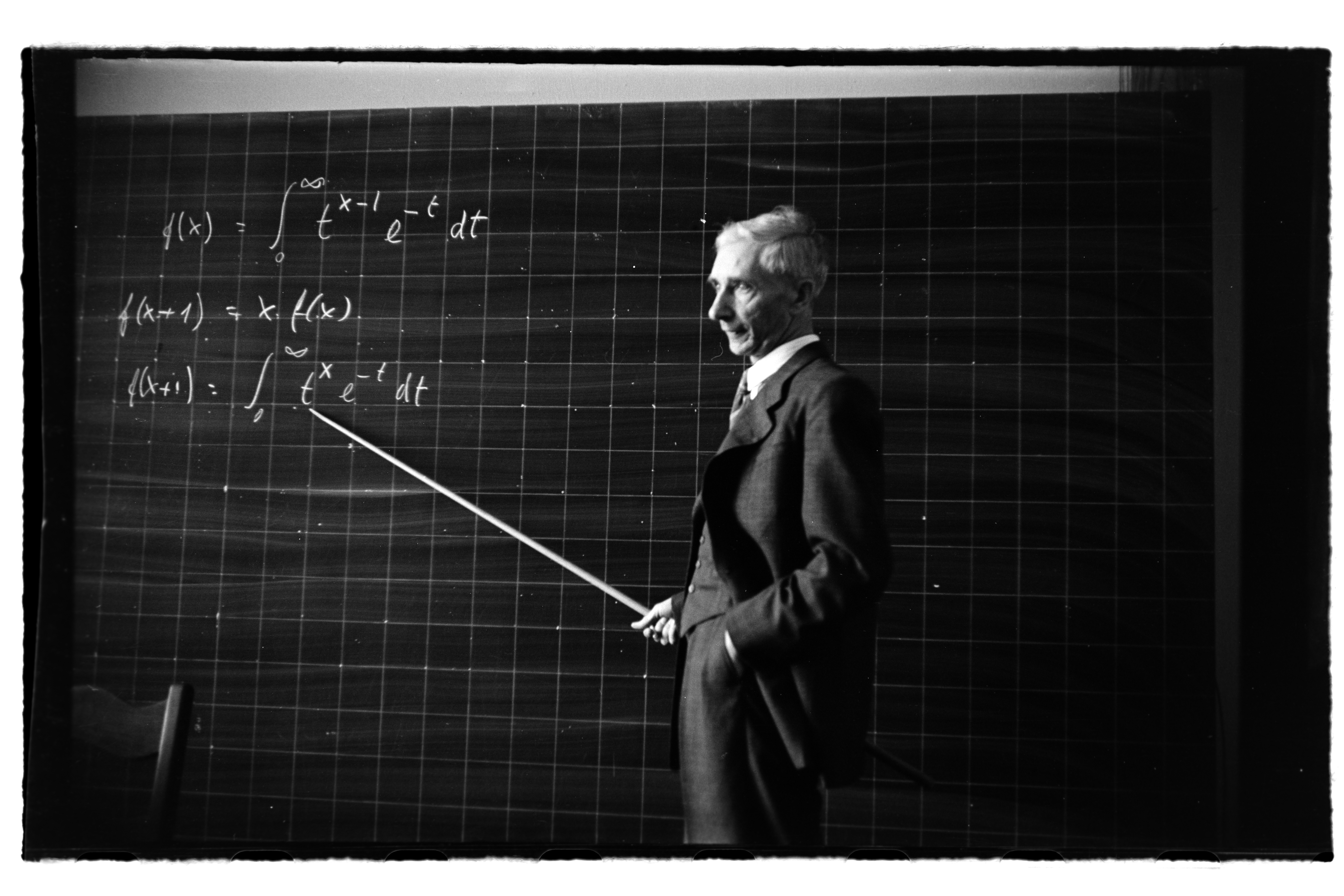Tambs Lyche med pekestokk mot tavlen.