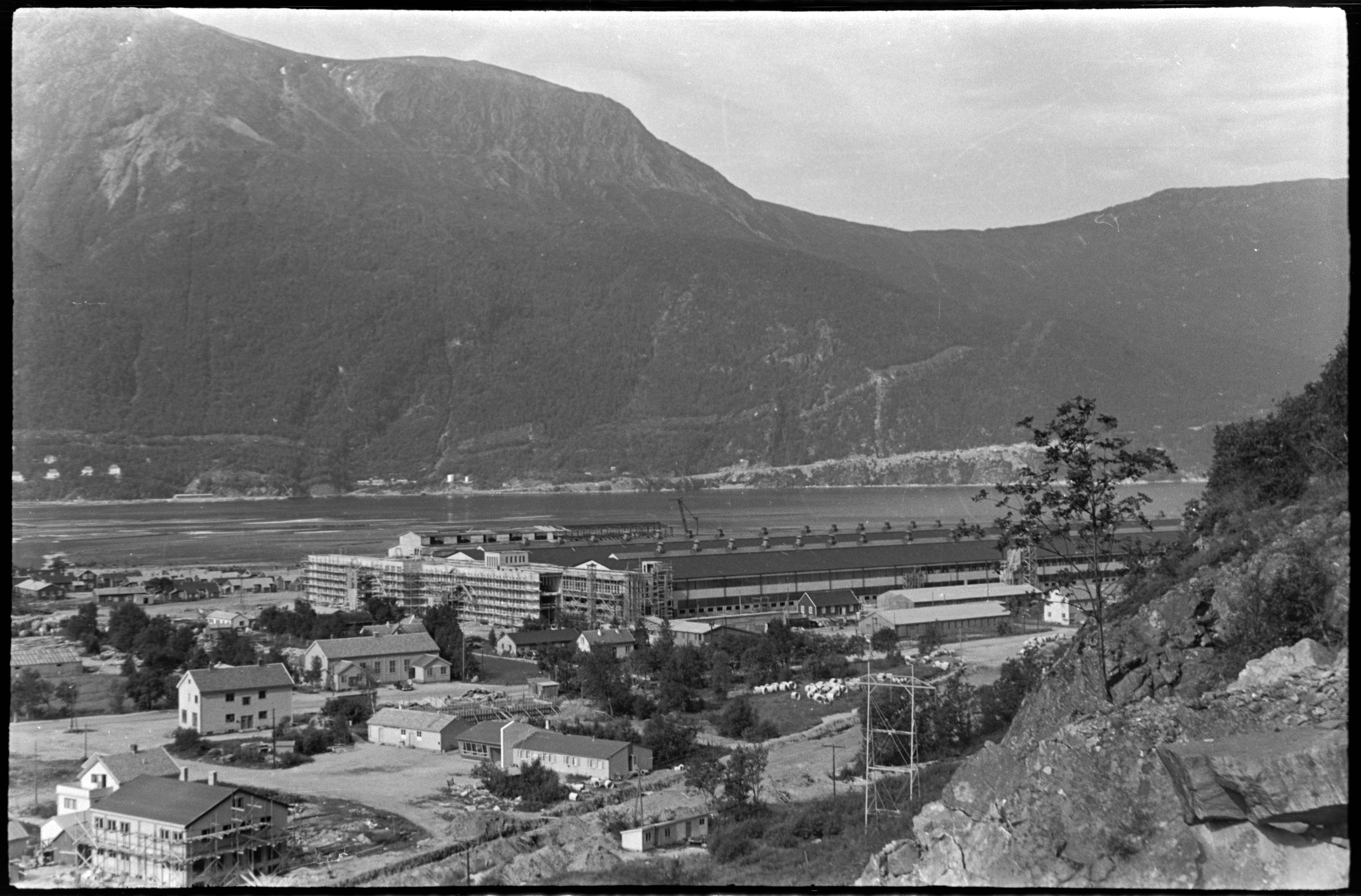 Oversiktsbilde av aluminiumsverket med tilliggende bolighus