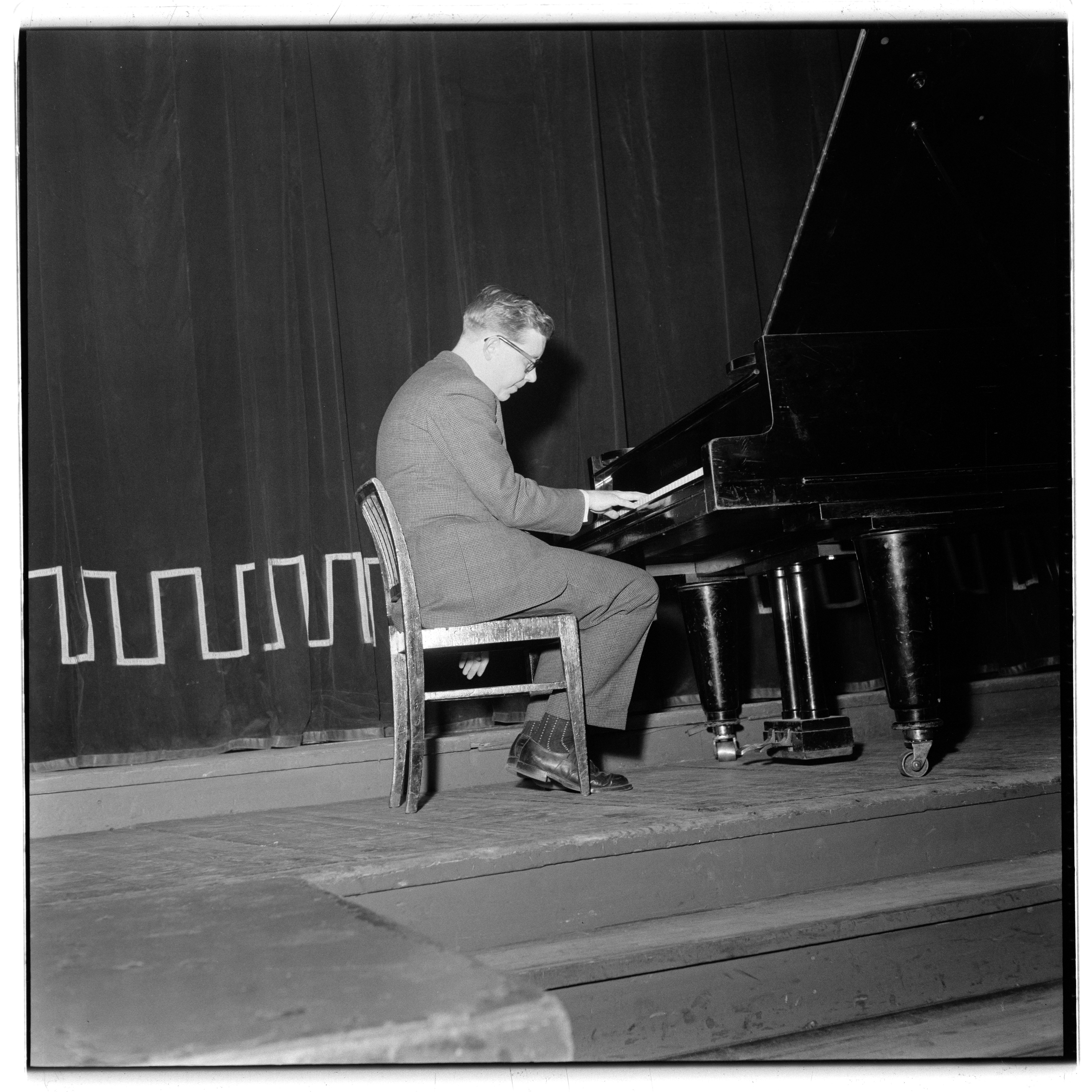 Fra festmøte "Knut Hamsun 100 år". Kunsterisk innslag ved Kjell Bækkelund.