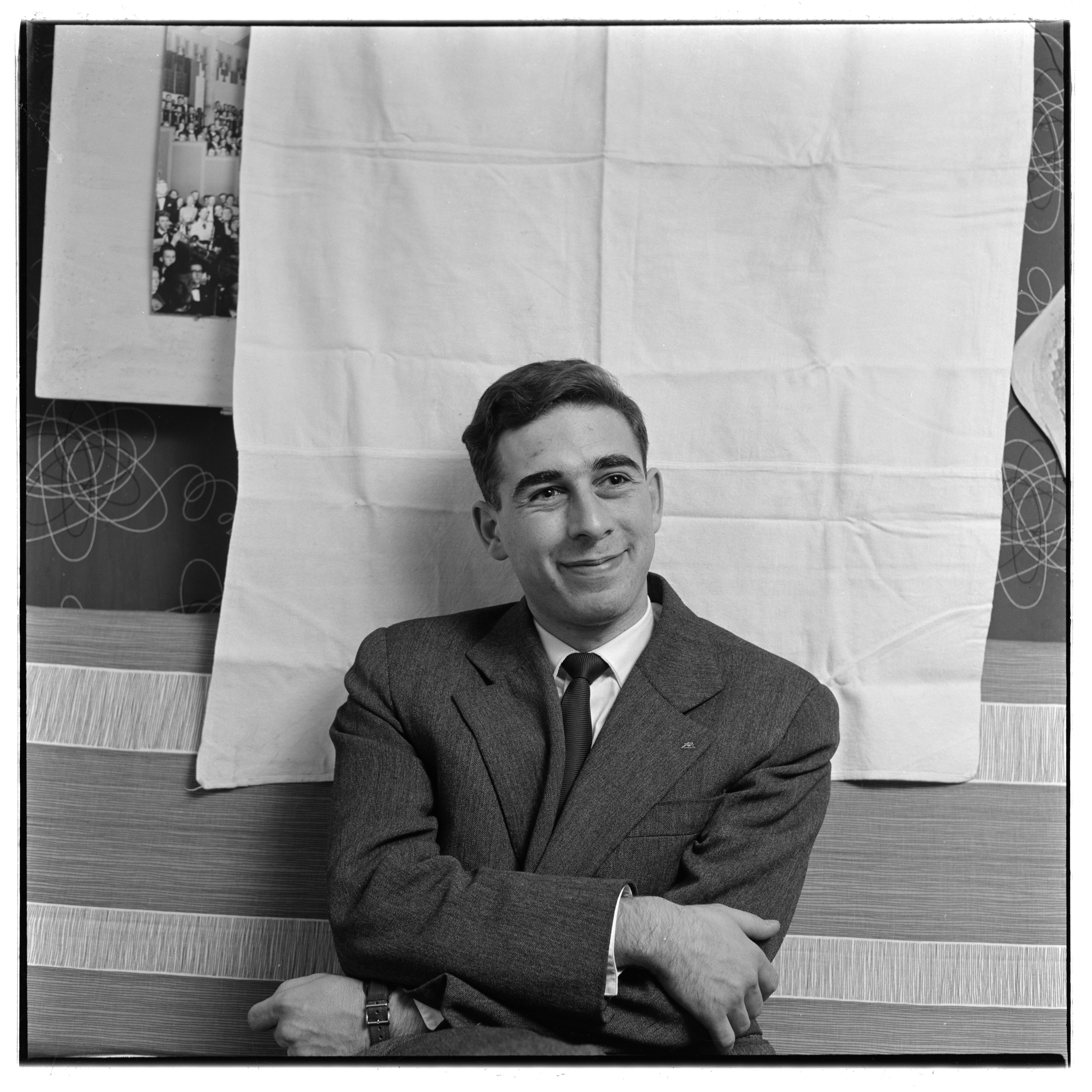Nyvalgt leder for Studentersamfundet, Peter Orlik. Orlik kom til Norge som flyktning fra Ungarn og ble senere professor i matematikk i USA.