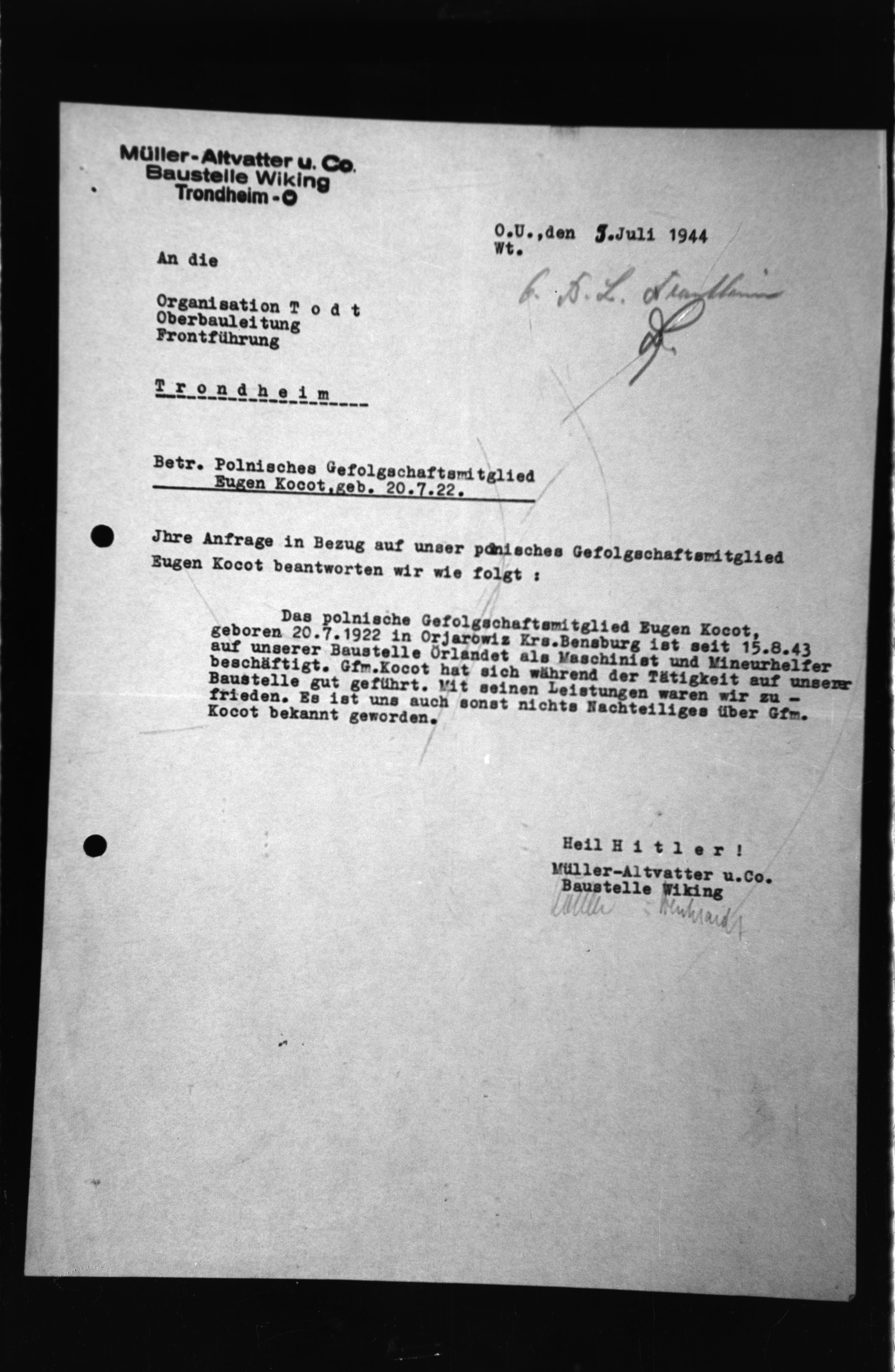 Brev datert 5. juli 1944 fra Müller-Altvatter c. Co.