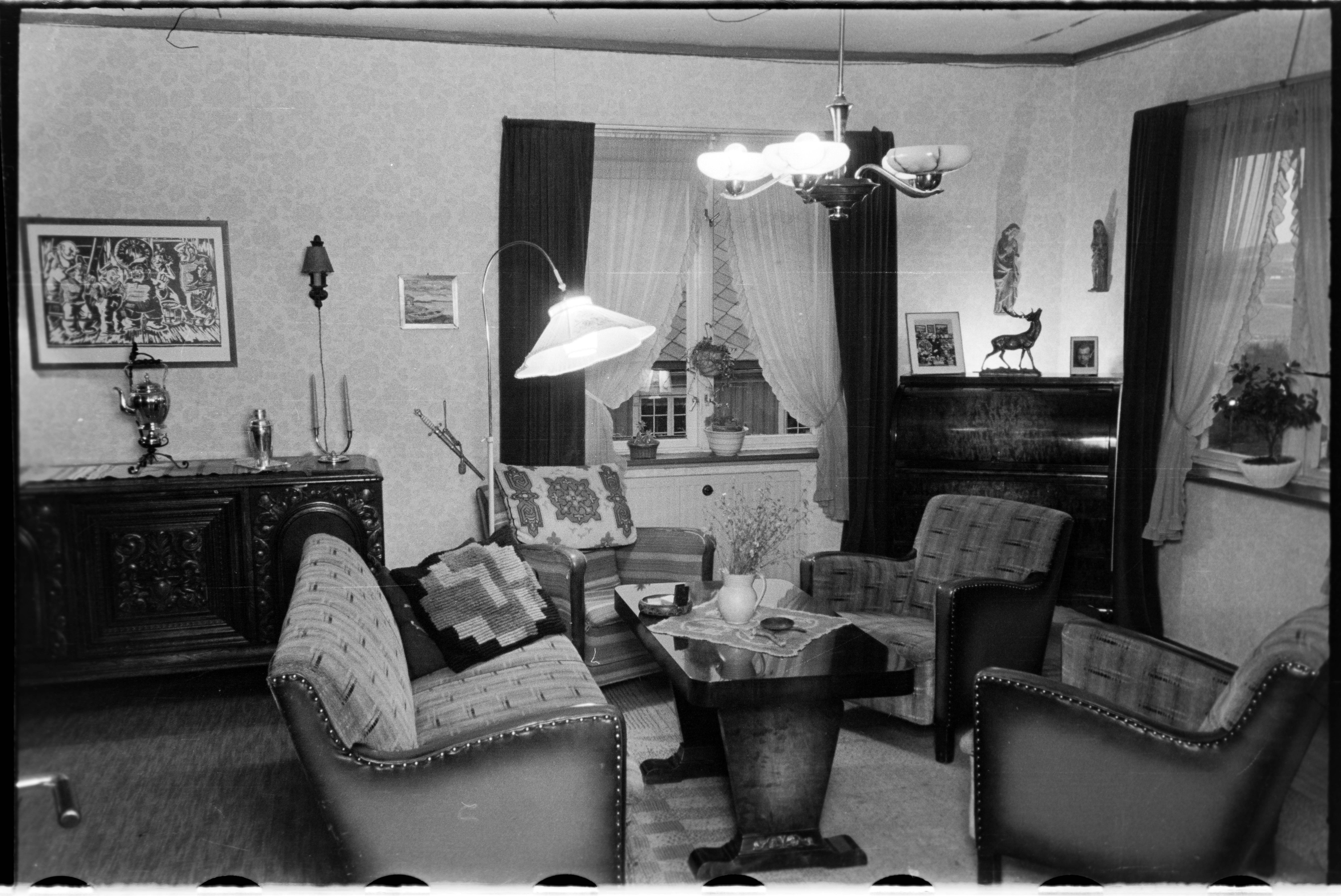 Stueinteriør i Oscar Wistings vei 2 på Byåsen i Trondheim hvor fotograf Klaus Forbregd bodde da bildet ble tatt.