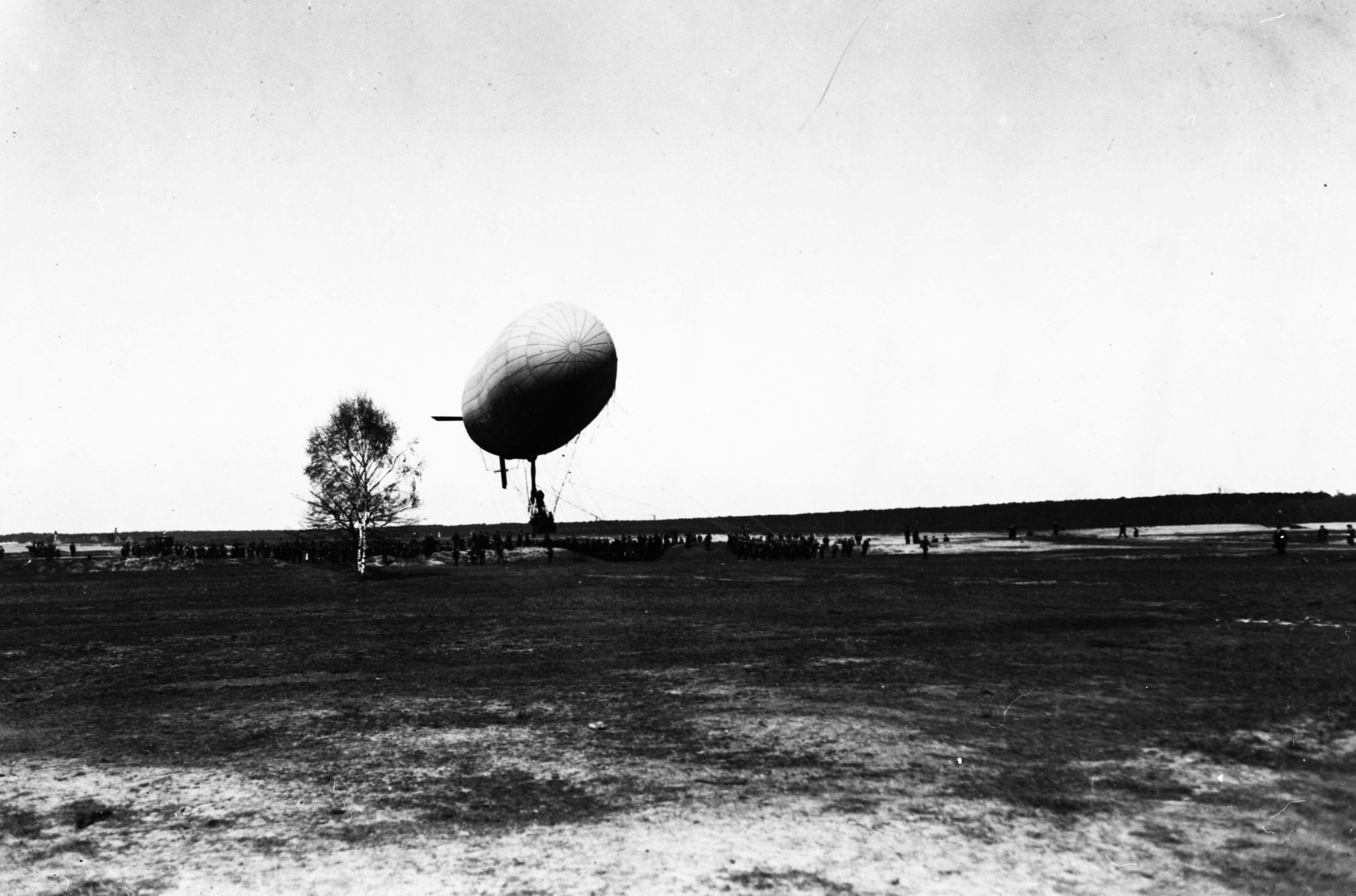 Ett luftkip på bakken, Parseval P.L.1. Flere personer ved luftskipet.