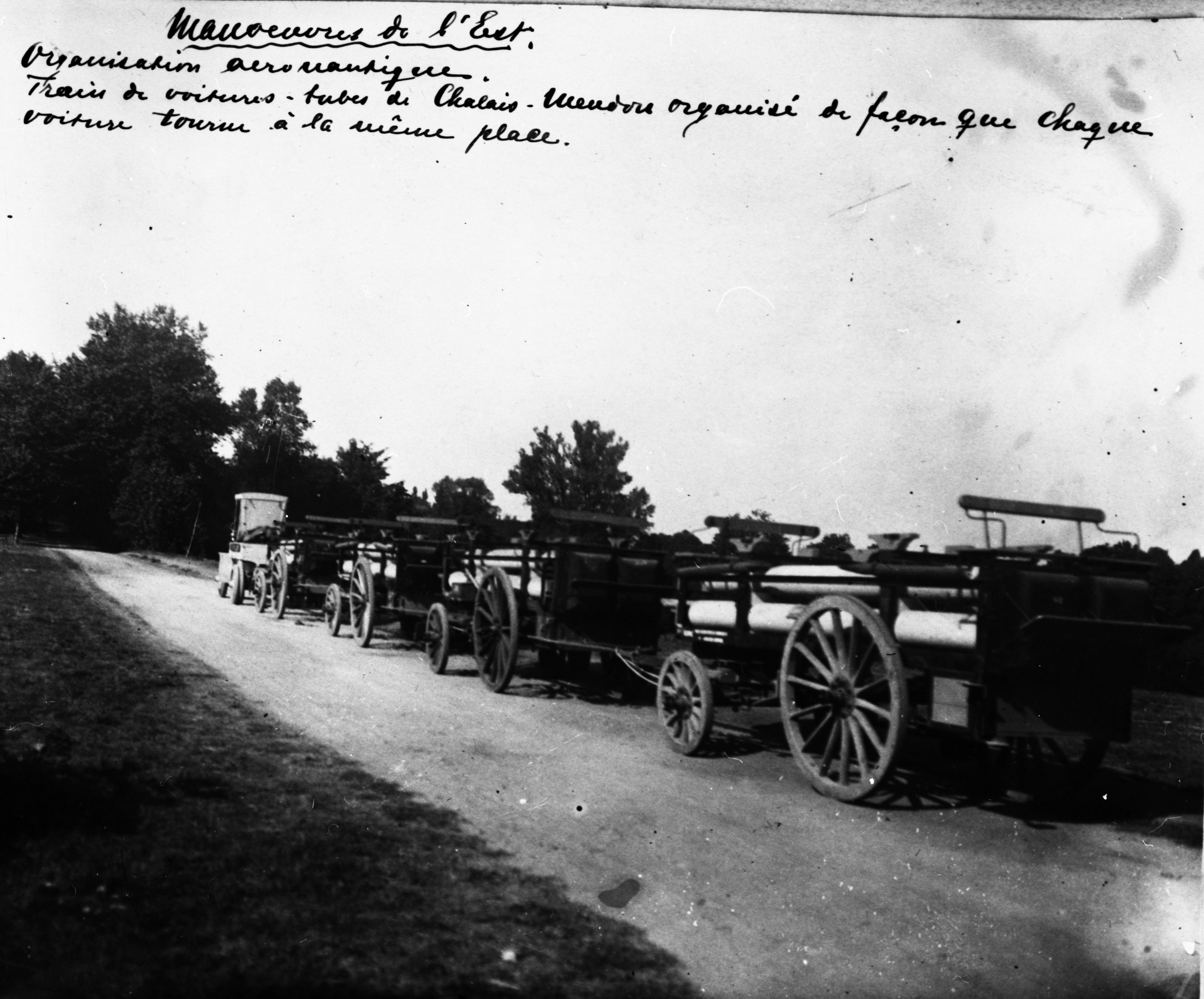 Kjøretøy og vogner, lastet med utstyr til luftskip