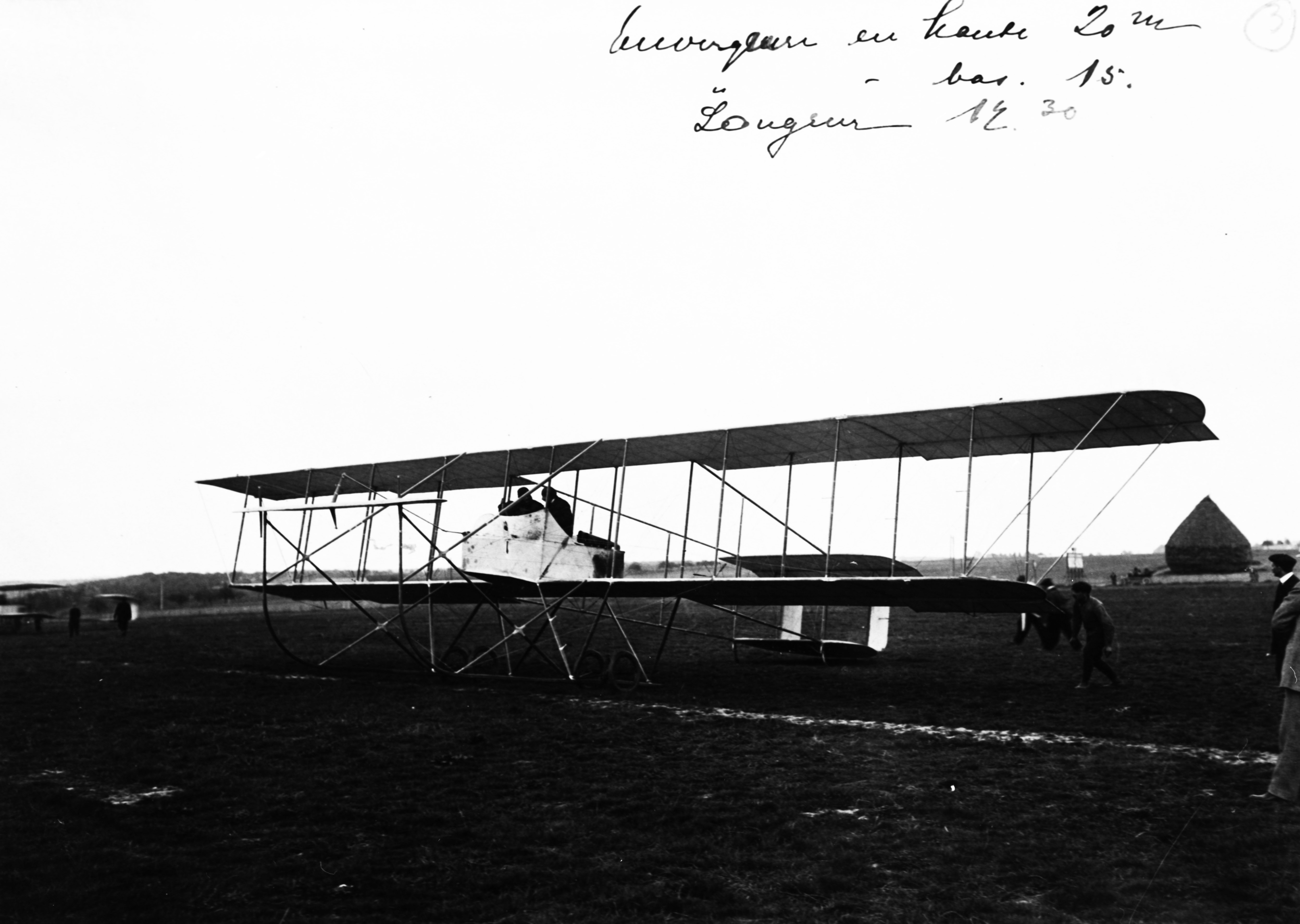 Ett fly på bakken, Maurice Farman. Noen personer ved flyet