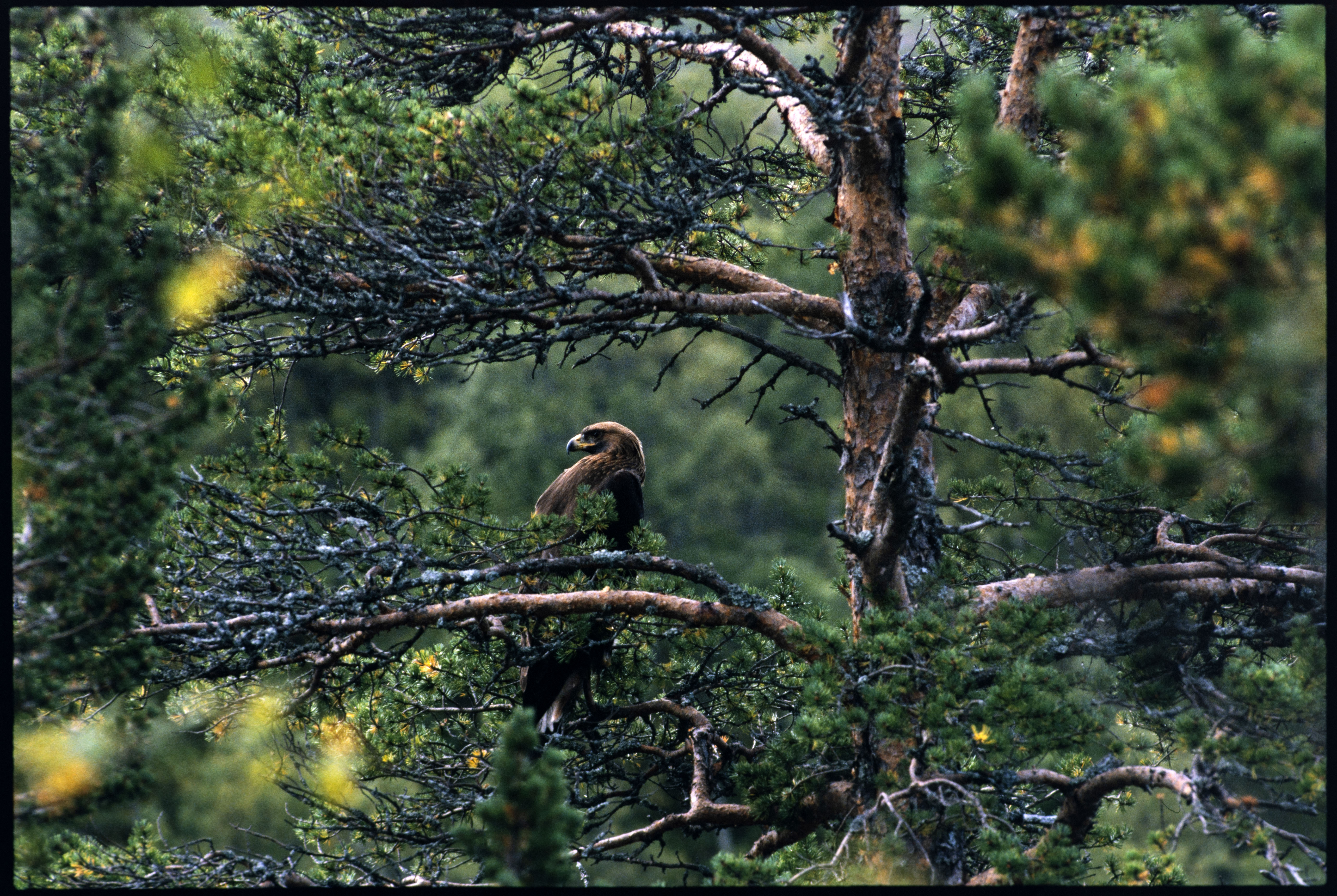 Kongeørn, ungfugl i furu. Killingdal, Skørruråa, Holtålen. Ca 2011