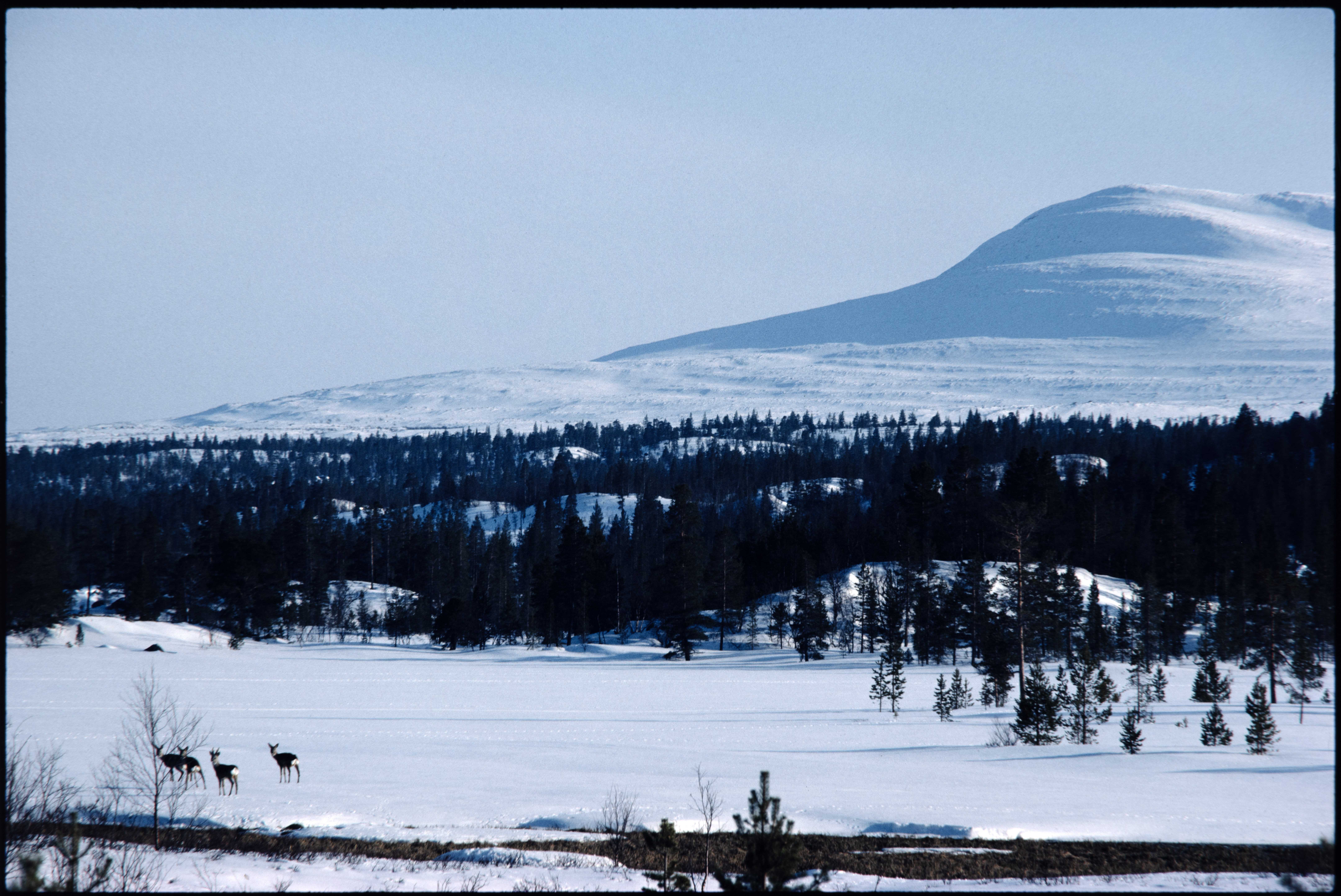 Rådyr. 4 dyr på isen ved Langen, Flensmarka. Røros