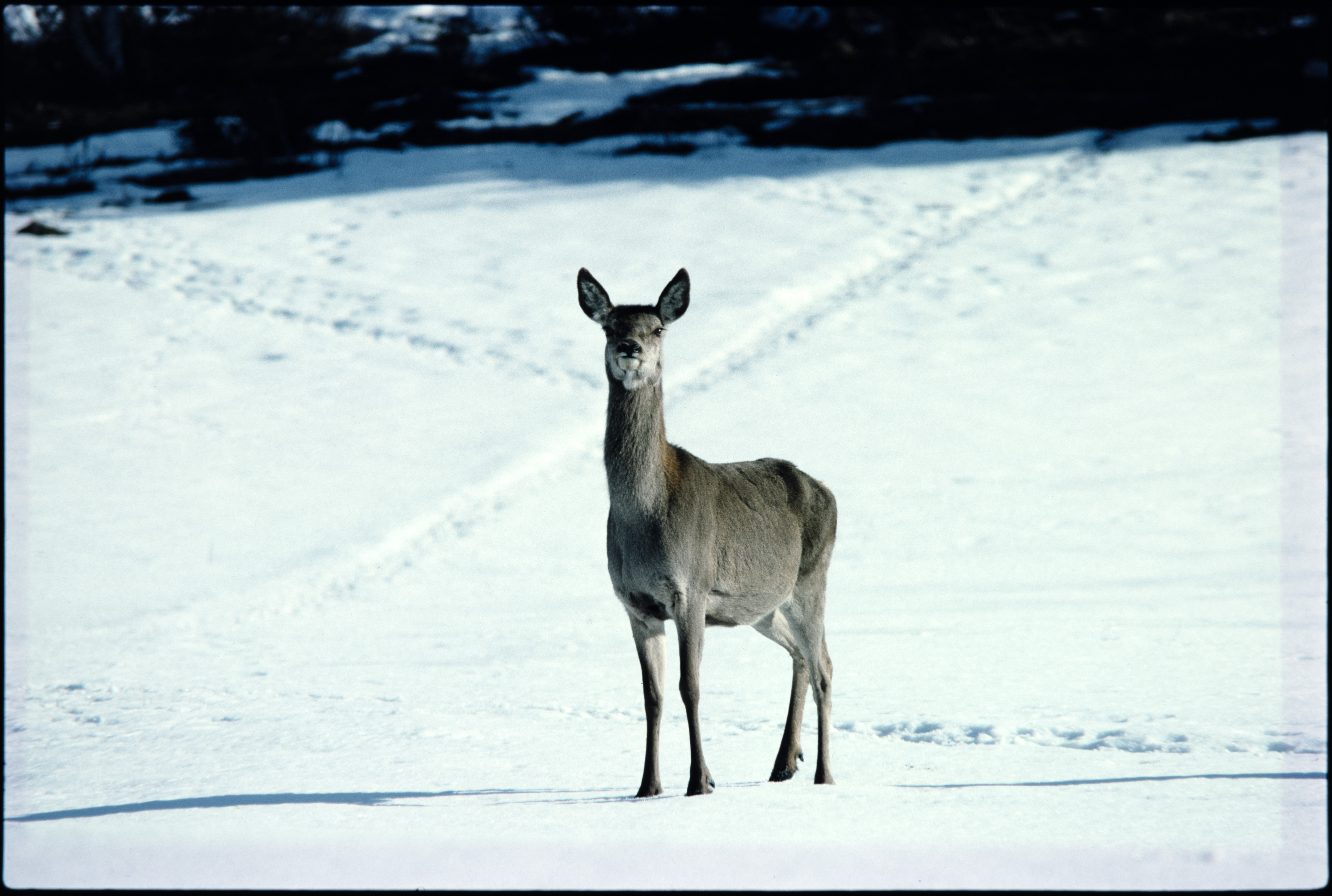 Hjort. Hind i snø
