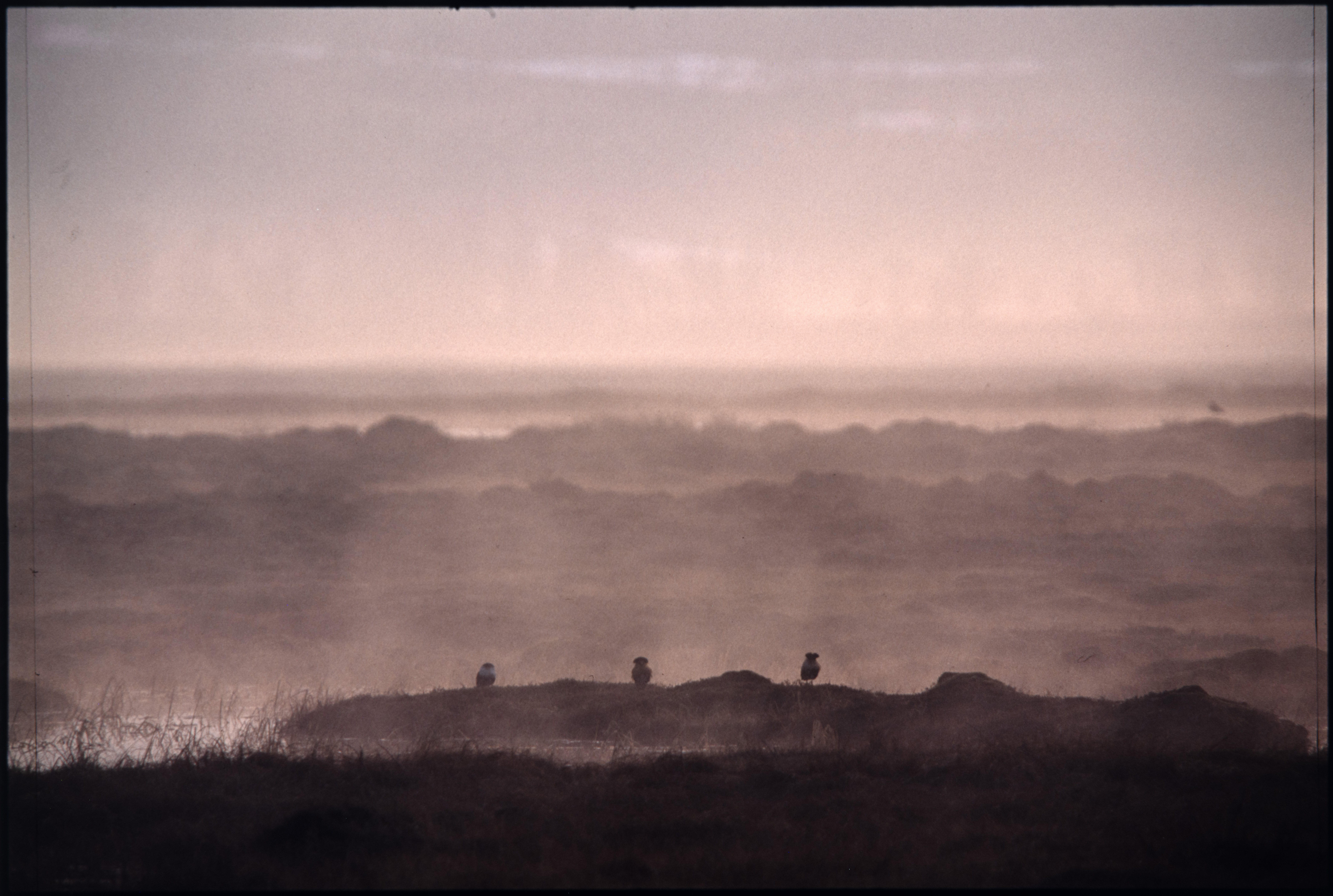 Brushane. 3 individ spiller i tåkedis. Vår