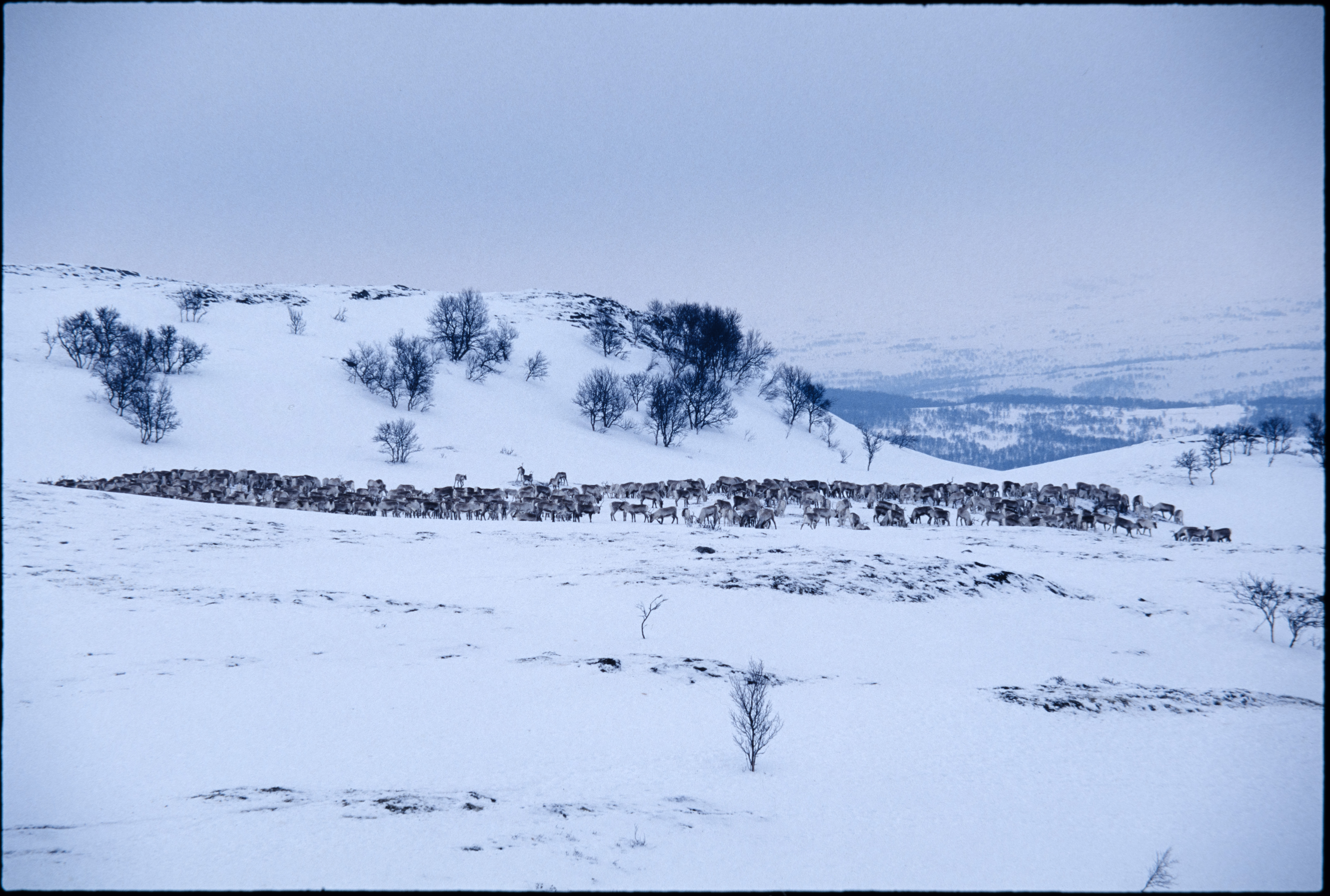 Villrein. Flokk i vinterfjell