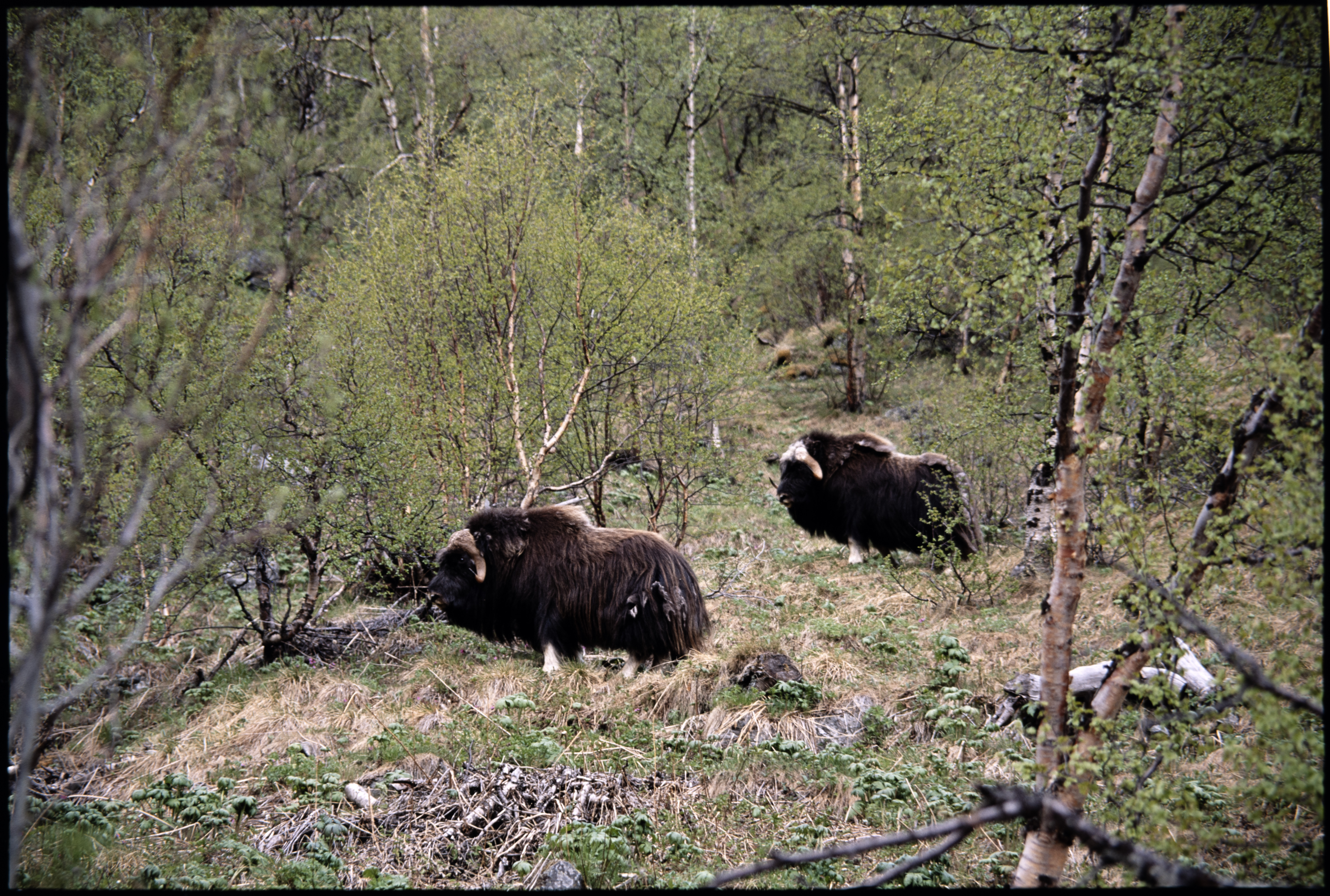 Moskusfe. 2 individ i høgstaudebjørkeskog