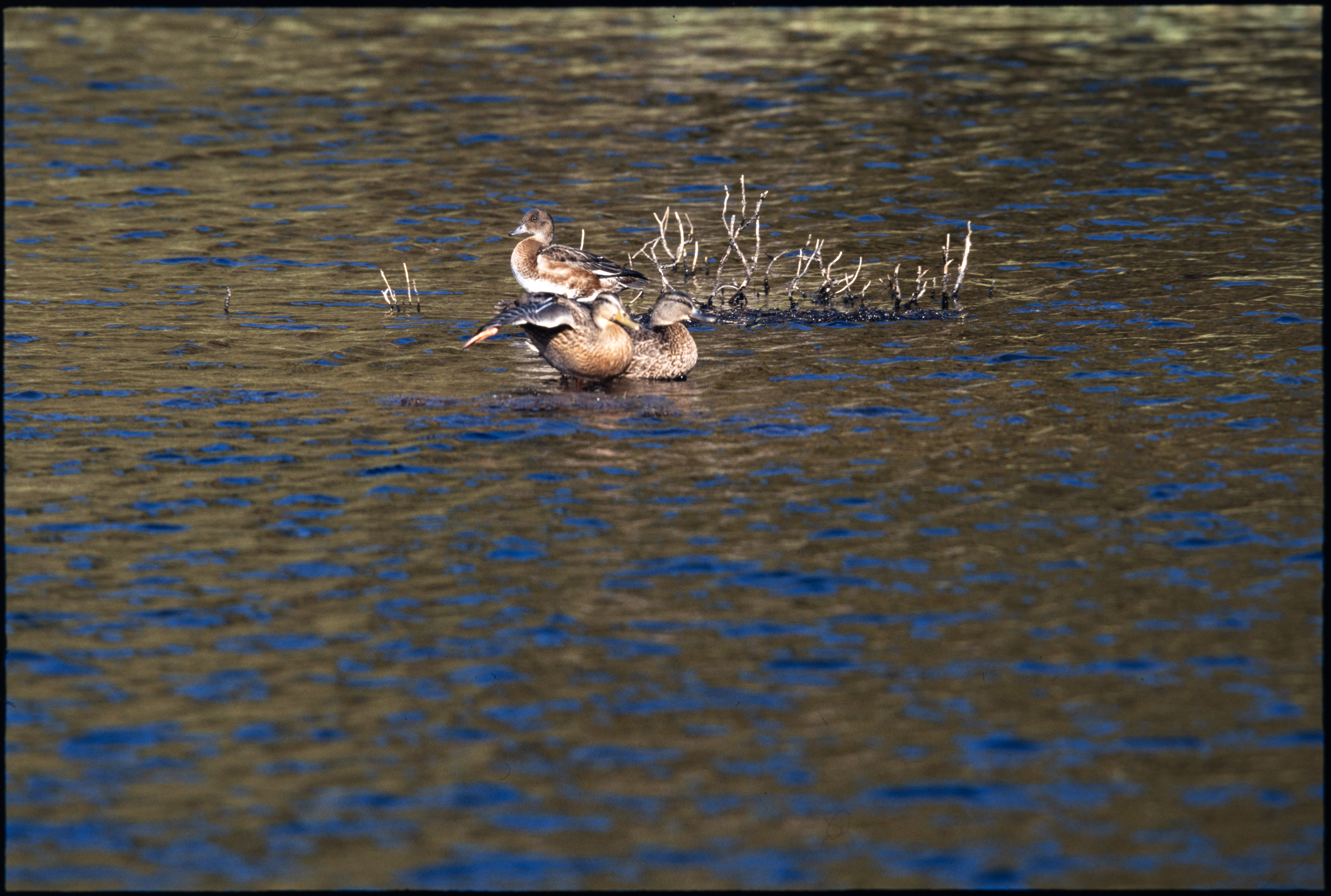 Stokkand. 2 stokkand hunner og 1 brunnakke i vatnet