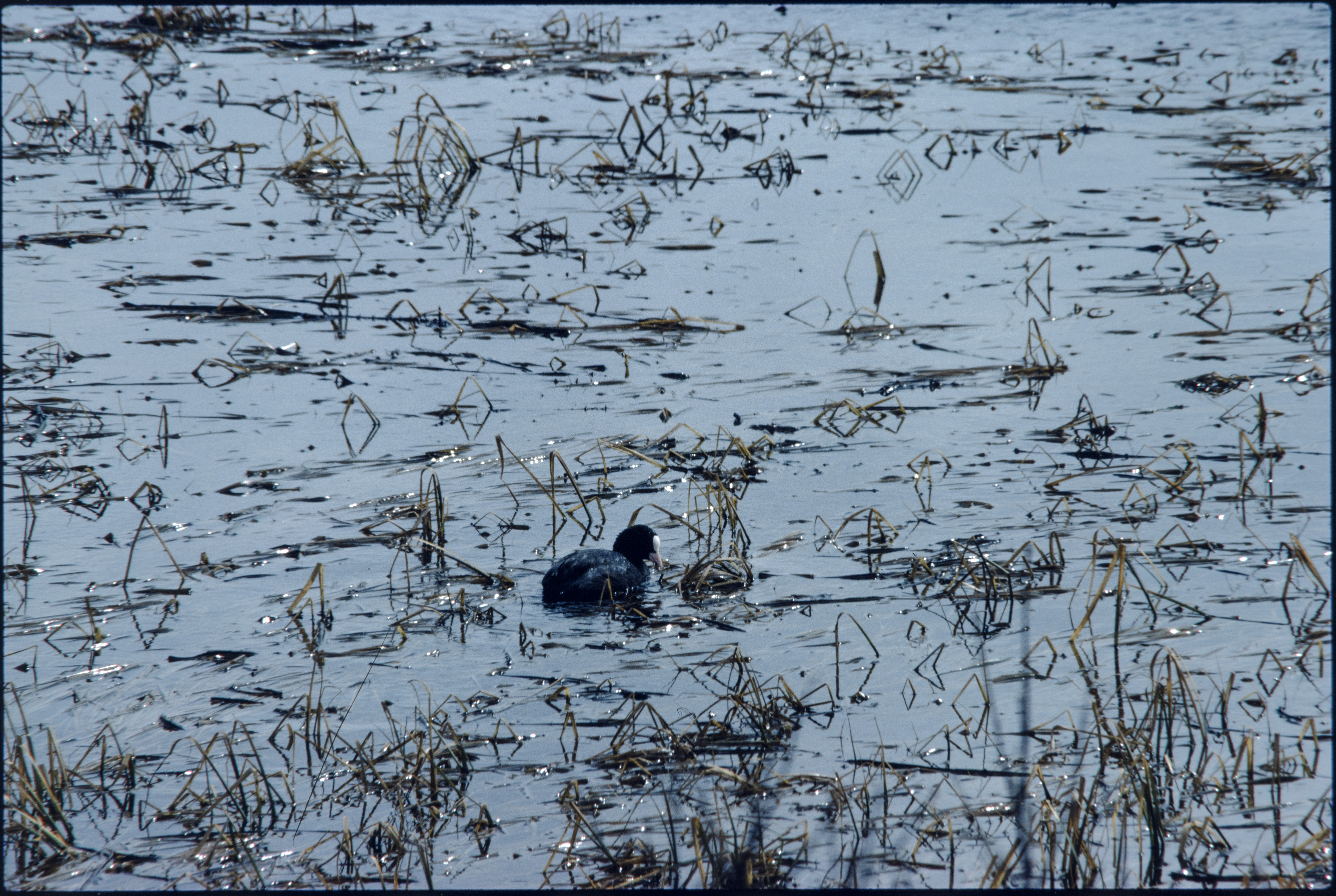 Sothøne. I grunt vatn
