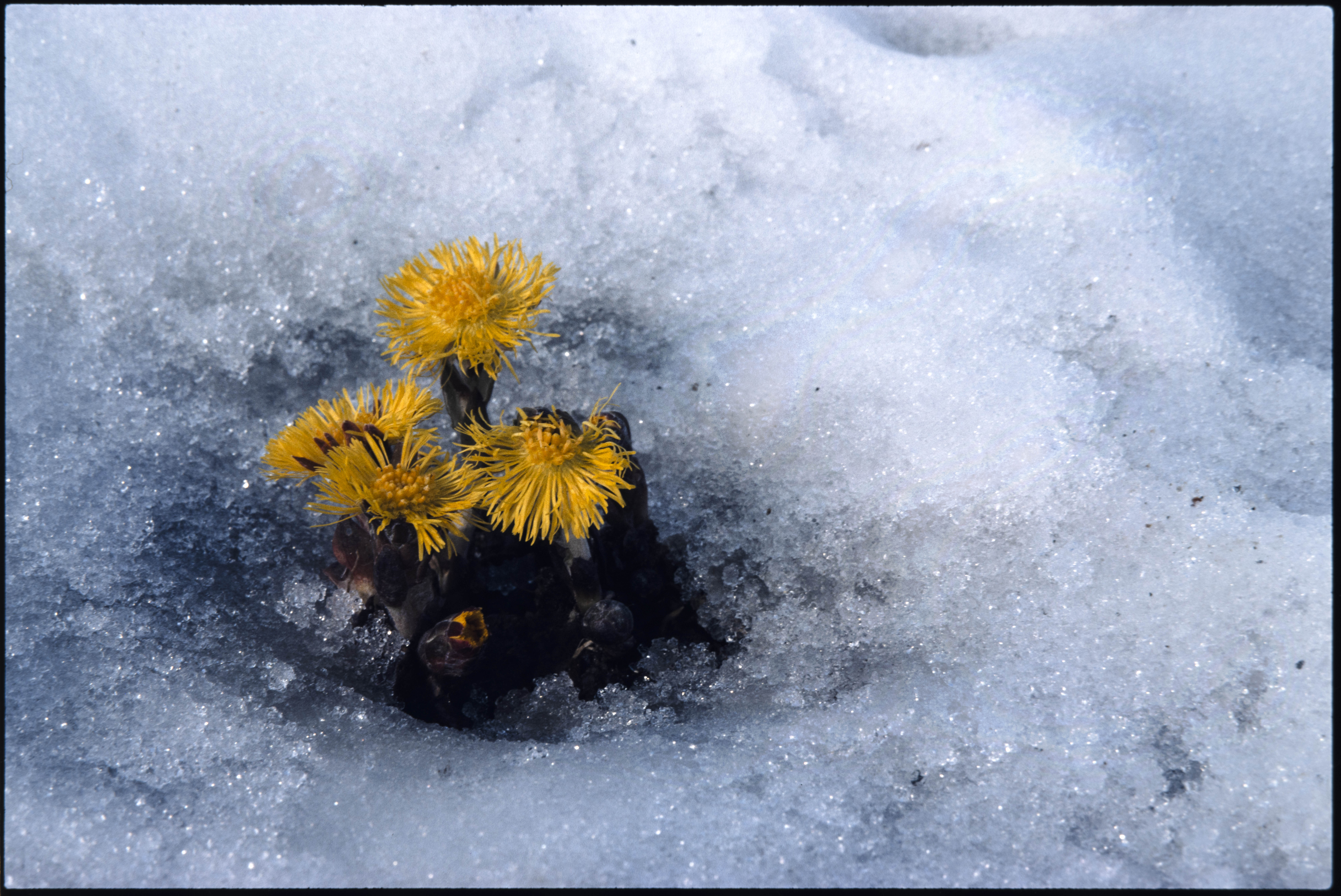 Hestehov. Vokser opp av snøen