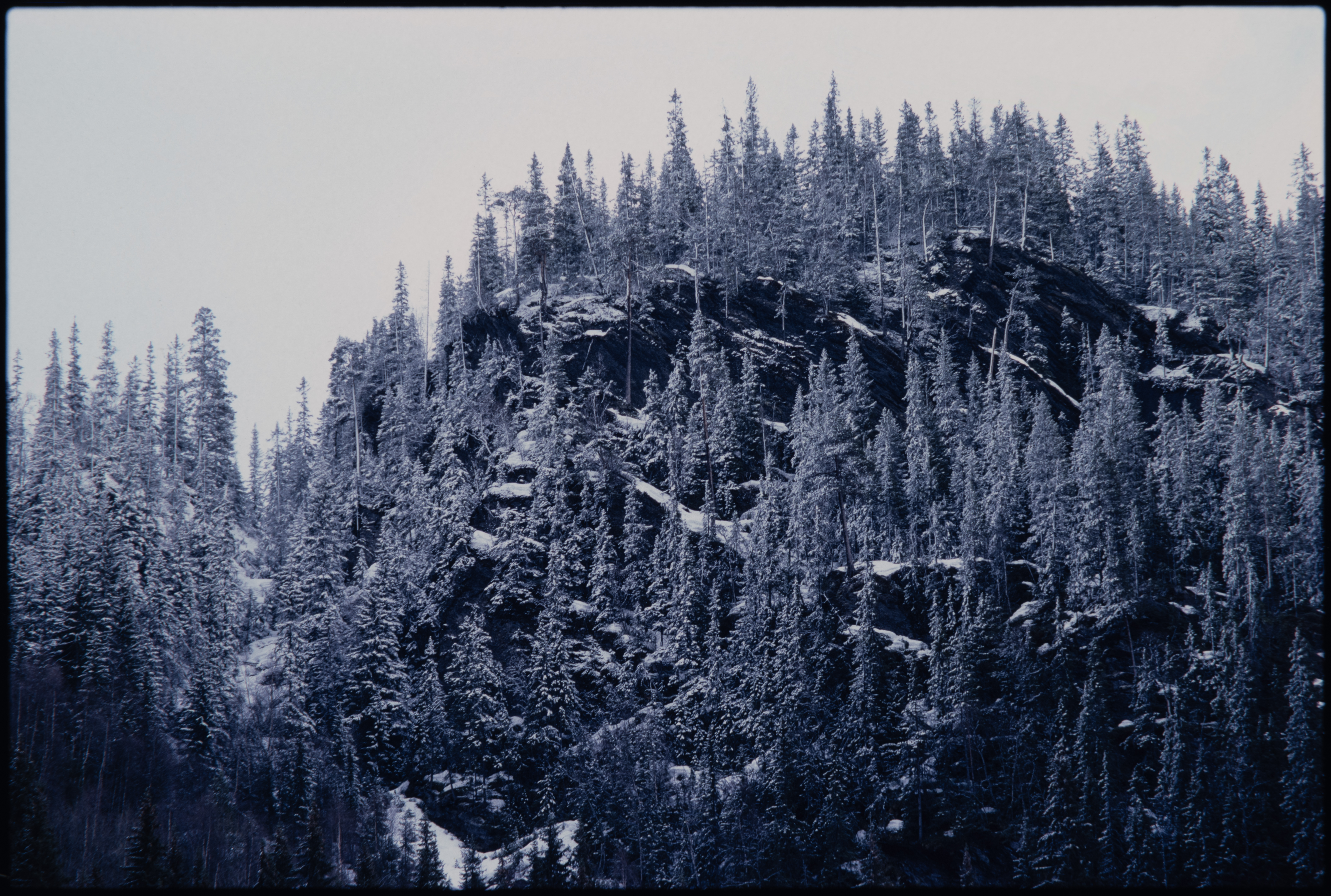 Granskog, berg, snø. Svølgja i Holtålen?
