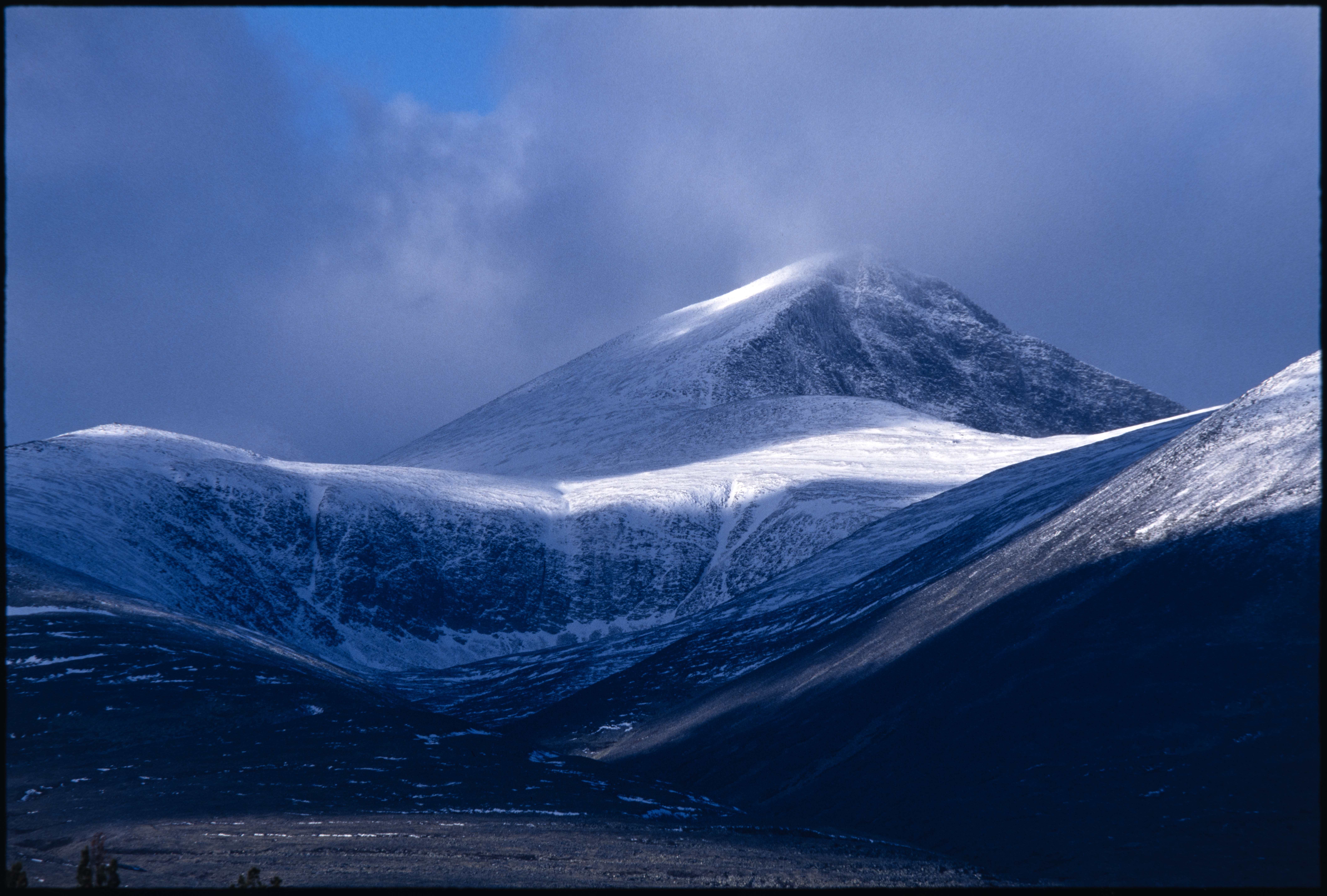 Rondane. Høgronden fra SØ (Atnsjøen). Nysnø. Folldal. Seinhøst/vinter