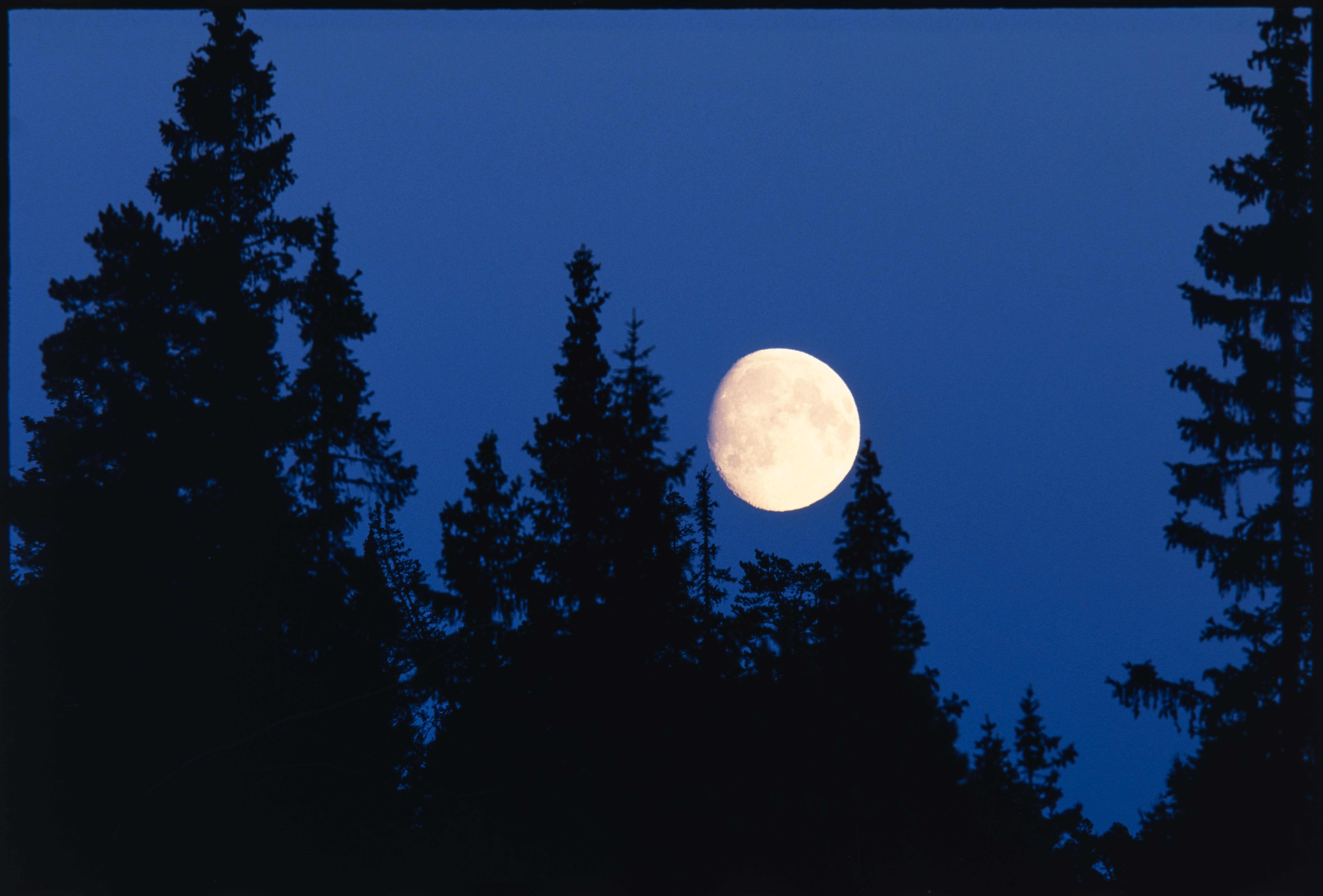 Granskog. Grantopper under nymåne