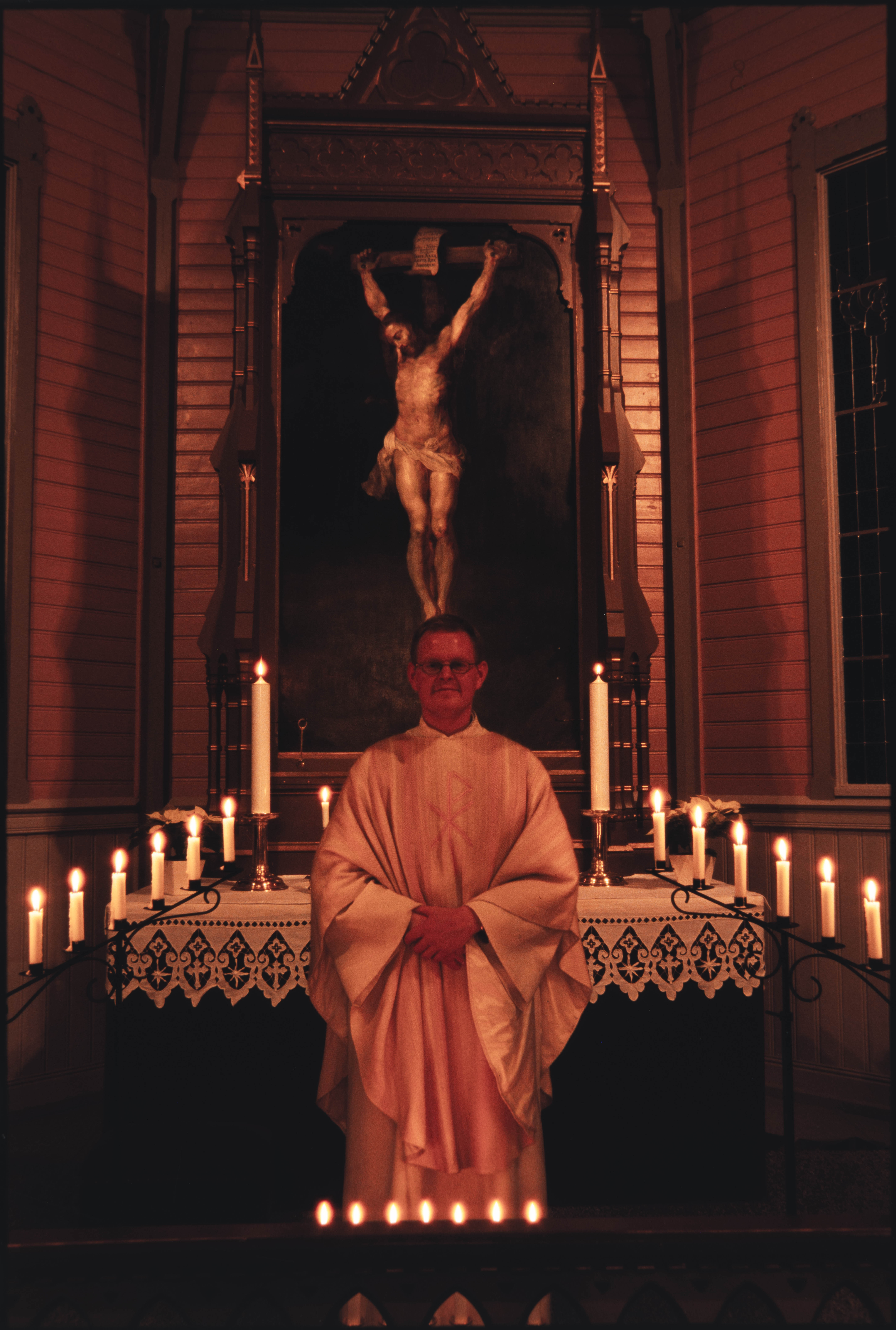 Jul, gudstjeneste i Ålen kirke. Presten ved alteret. Ålen. 1980-tallet?