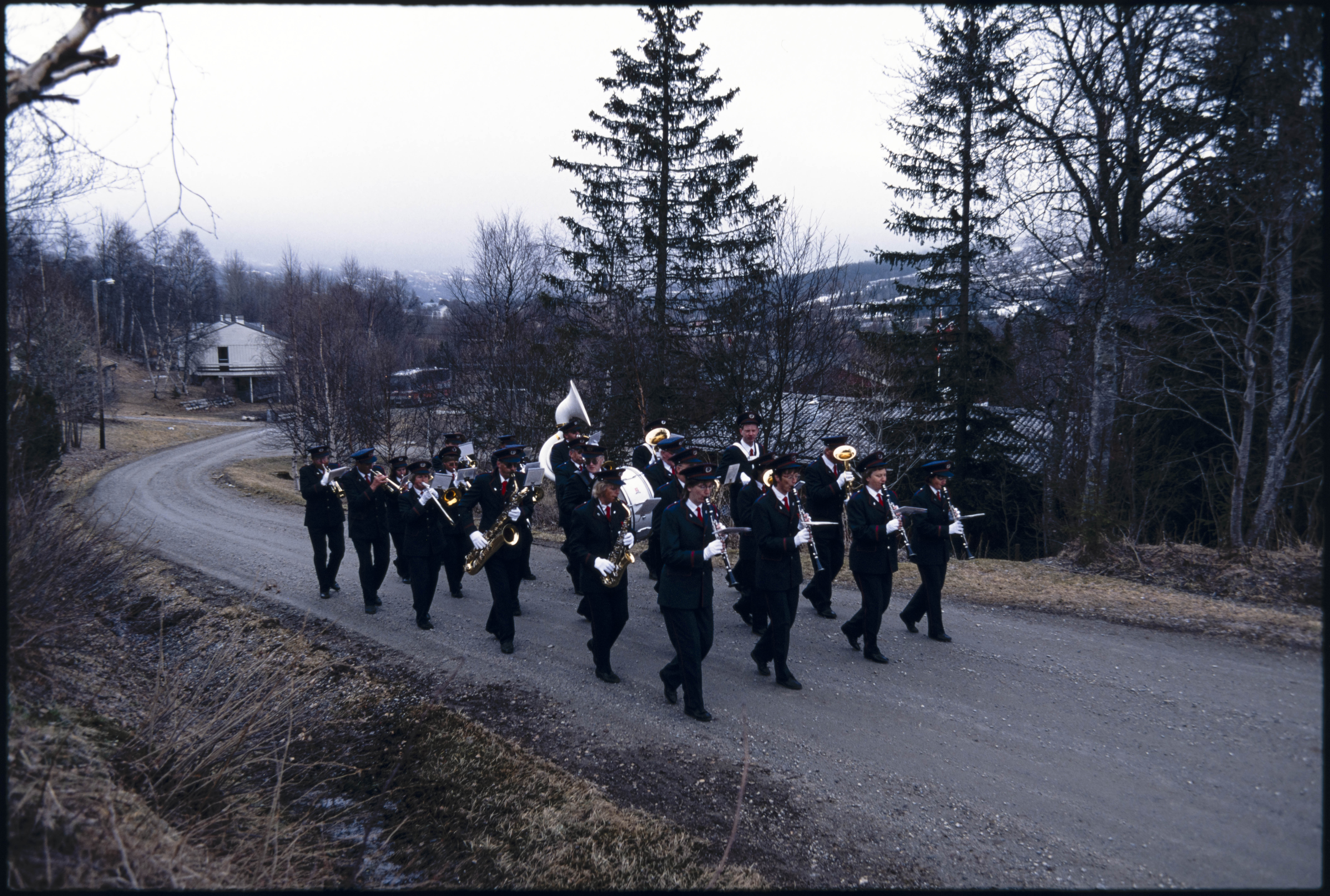 Korpset spiller. På vei til Rønningslia, Ålen 1. mai 1998