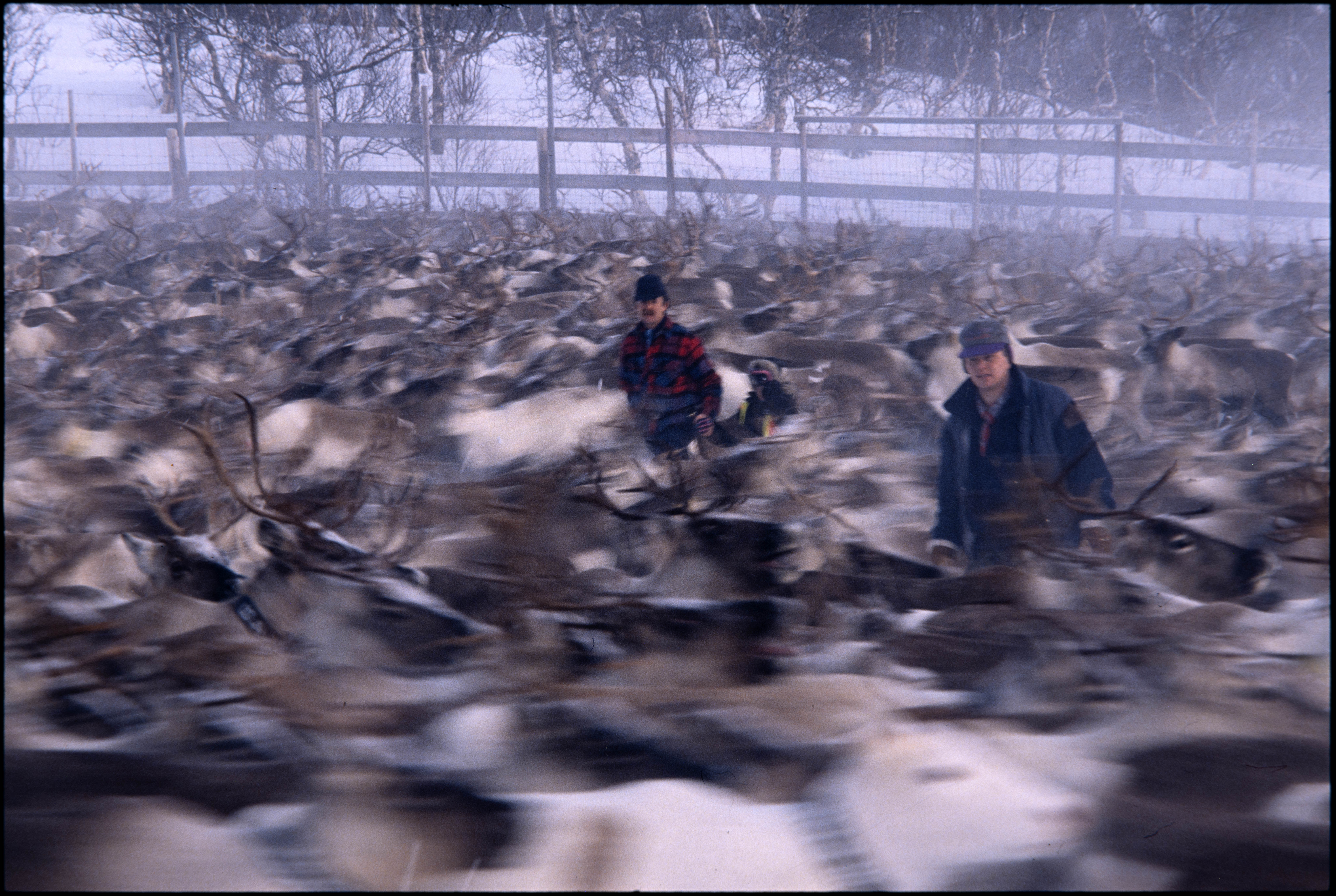 Tamreindrift. Skilling for slakt. Harsjøen. Røros. November