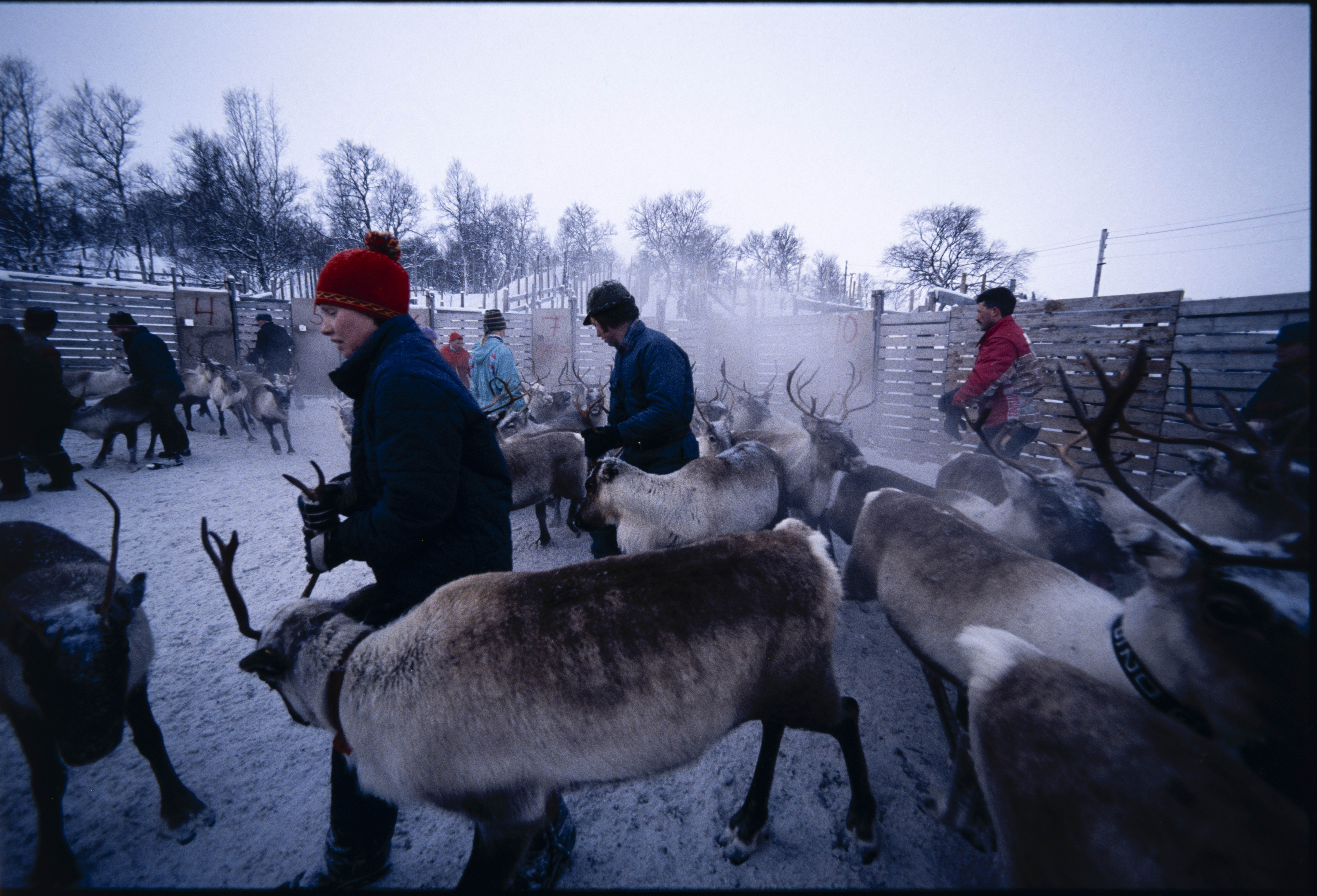 Tamreindrift. Skilling i samletrøa ved Harsjøen. Røros. November
