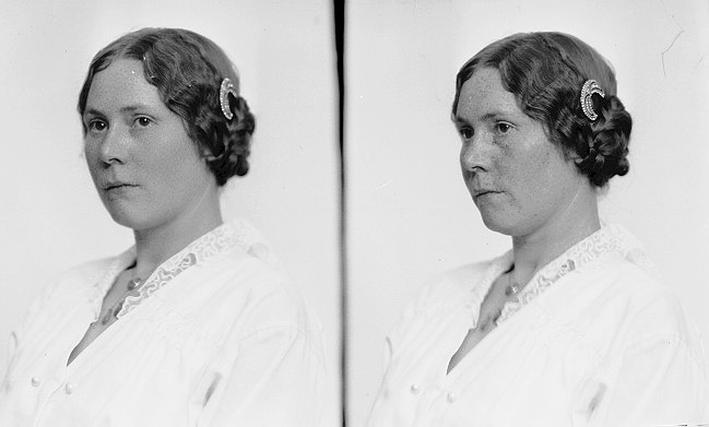 Brystbilde av kvinne med spenne eller lingnende i håret