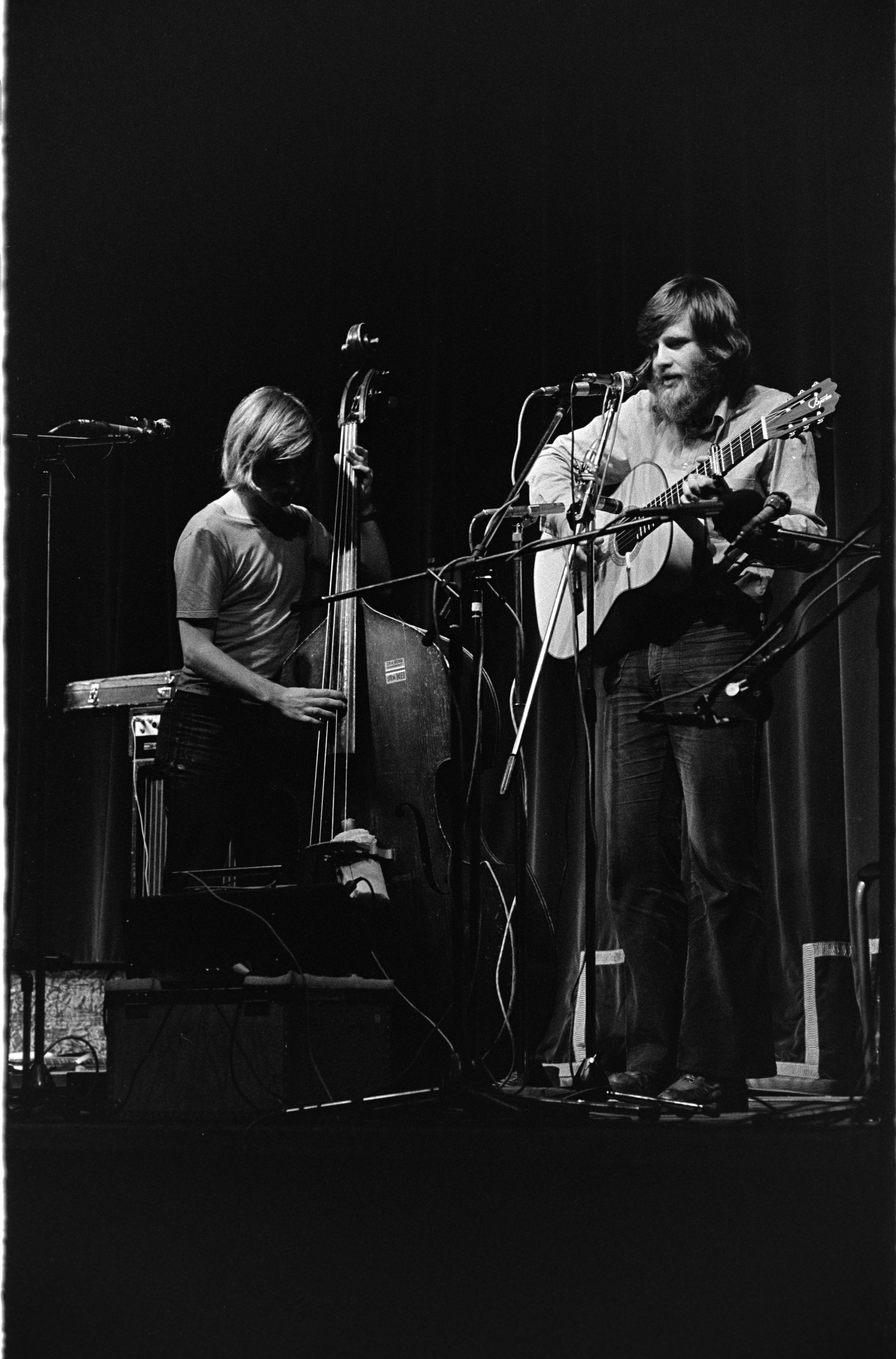 Fra vømmølkonsert i Studentersamfundet. Trolig oppvarming. Hans Robertsen på gitar og Stein Borgersen på bass.