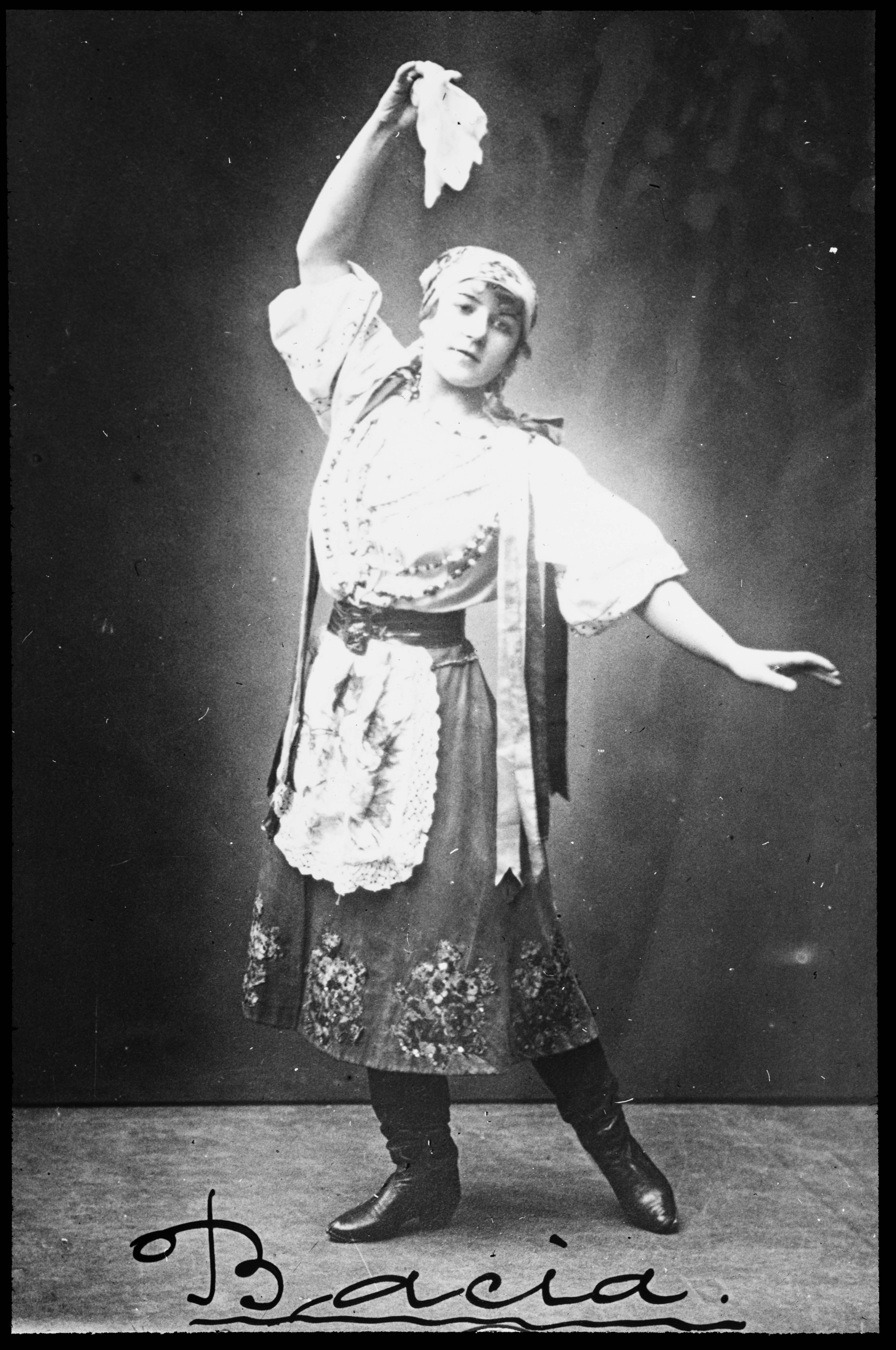 Portrett av en ukjent kvinne, antageligvis gjestedanserinne i Hjorten Revy- og Varietéteater. Påskrevet: "Bacia".