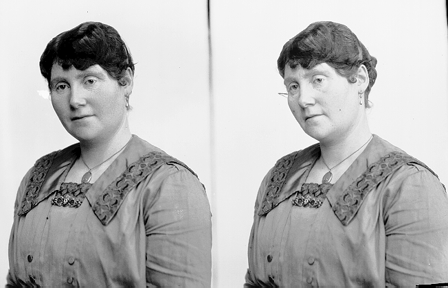 Brystbilde av kvinne med brodert krave