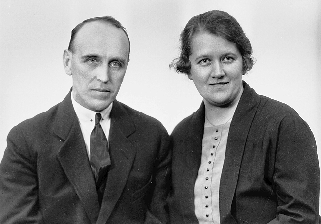 Par, mann, mørk dress, kvinne, lys bluse, mørk jakke, halvfigur