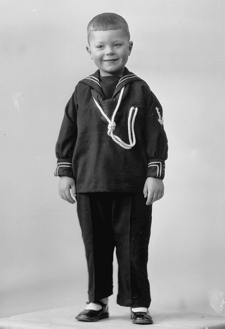 Gutt, mørk matrosdress, stående, helfigur