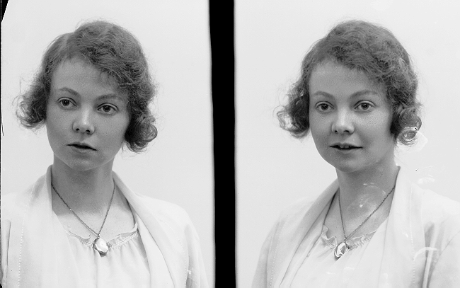 Kvinne, lys kjole, halvfigur