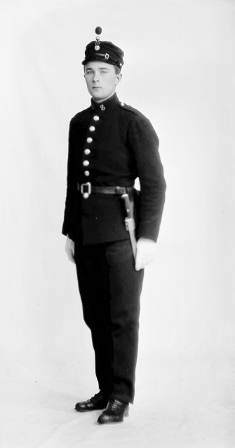Mann, uniform, stående, helfigur