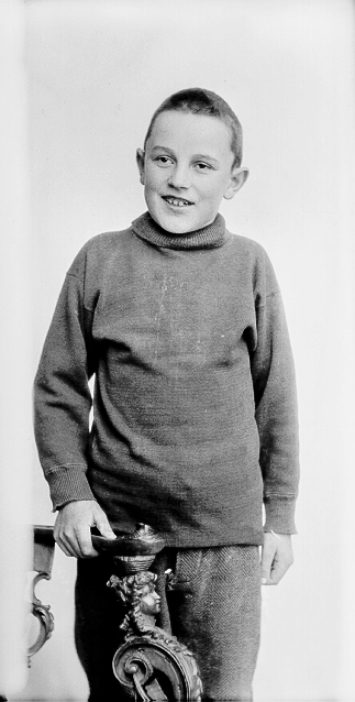 Gutt, grå høyhalset genser, stående, halvfigur