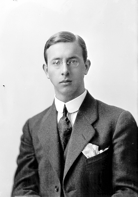 Mann, lorgnetter, mørk dress, halvfigur